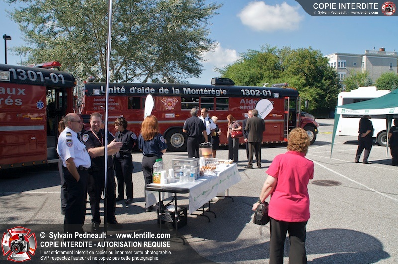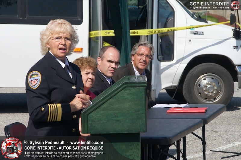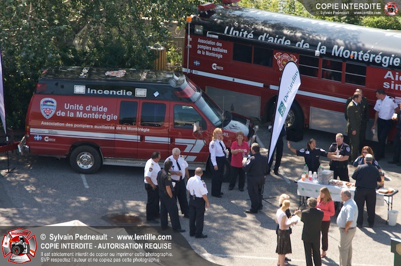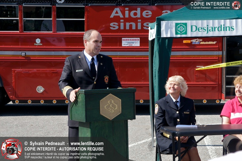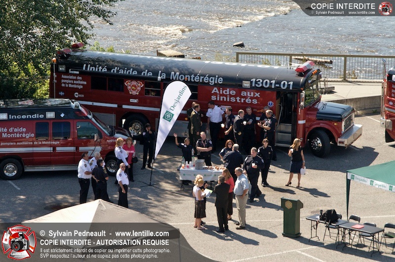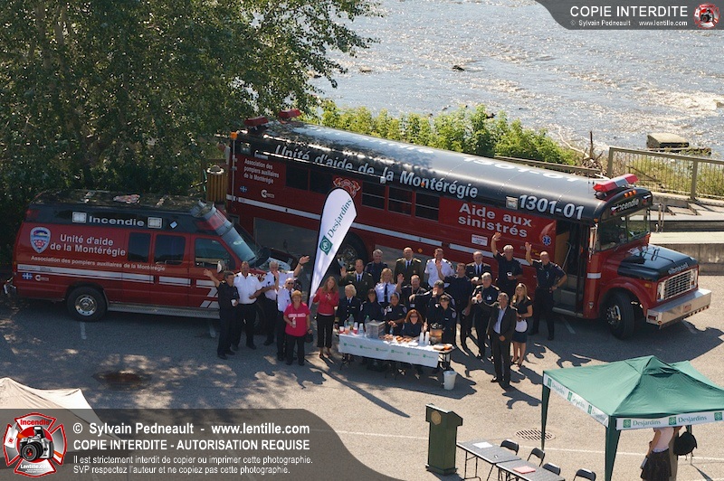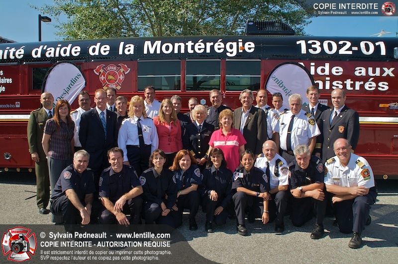 L'Association des Pompiers Auxiliaires de la Montérégie (APAM) a organisé une conférence de presse afin d'annoncer un grand partenariat avec la Fédération des caisses Desjardins, ainsi que pour dévoiler officiellement le nouvel autobus 1302 et présenter le futur minibus qui remplacera le 1201.