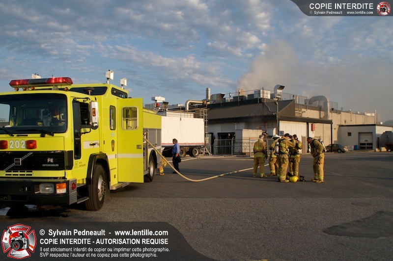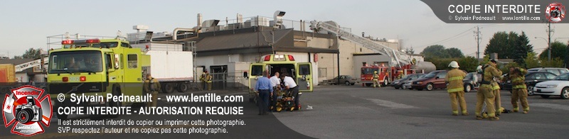 Un incendie dans une pré-friteuse industrielle a entraîné le déclanchement d'un 10-14 par le Service de sécurité incendie de la Ville de Saint-Hyacinthe. Deux pompiers et un employé de l'usine ont subit des brûlures localisées au 2ième et 3ième degrés. Ils ont été transportés au centre hospitalier par les paramédics de Saint-Hyacinthe.