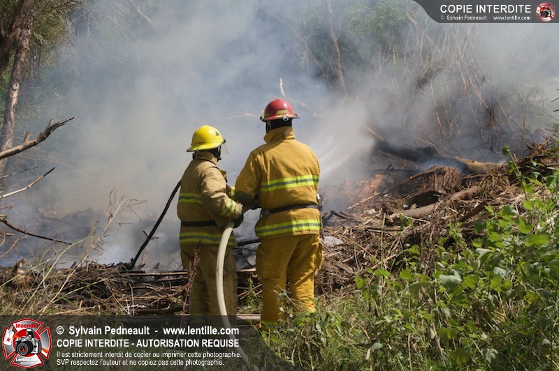 Un amas de branches et de débris en bordure de la rivière a pris feu, nécessitant l'intervention des pompiers de Saint-Hyacinthe. La Sûreté du Québec a été demandée sur les lieux pour enquêter.