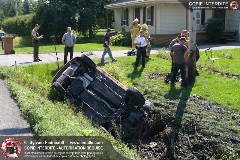 Les pompiers de Saint-Hyacinthe ont répondu à un appel pour une désincarcération automobile sur la rue St-Louis. À leur arrivée, la victime était cependant sortie. Les paramédics de Saint-Hyacinthe l'ont transportée au Centre hospitalier Honoré-Mercier.