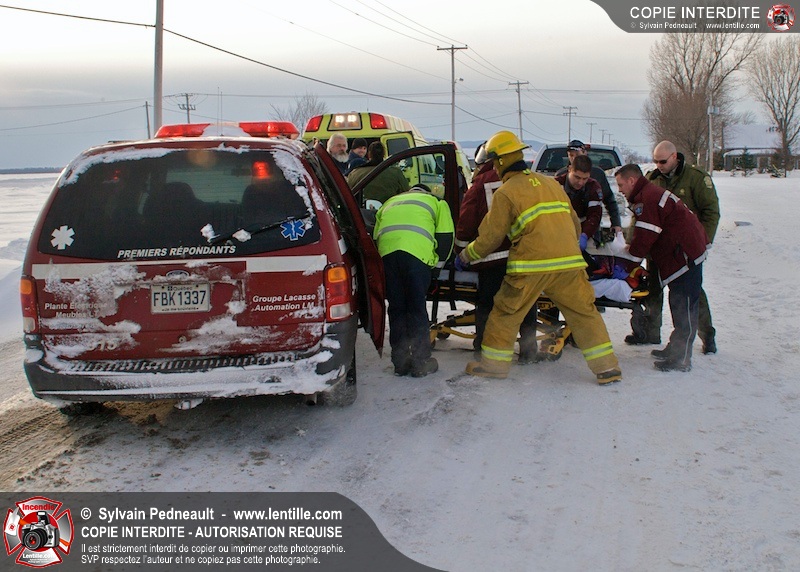 Les pompiers et premiers répondants de St-Pie sont intervenus à l'intersection du Rang Double et du Rang Saint-Ours pour une collision frontale. L'équipe de désincarcération du SSI de Saint-Hyacinthe a été appelé en prévention, mais ses services n'ont pas été requis. Les victimes ont été stabilisées et transportées par les paramédics de Saint-Hyacinthe.