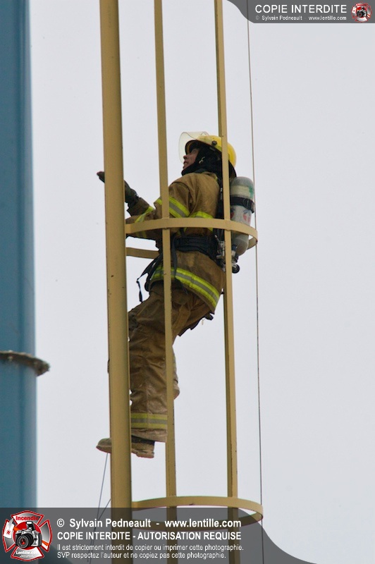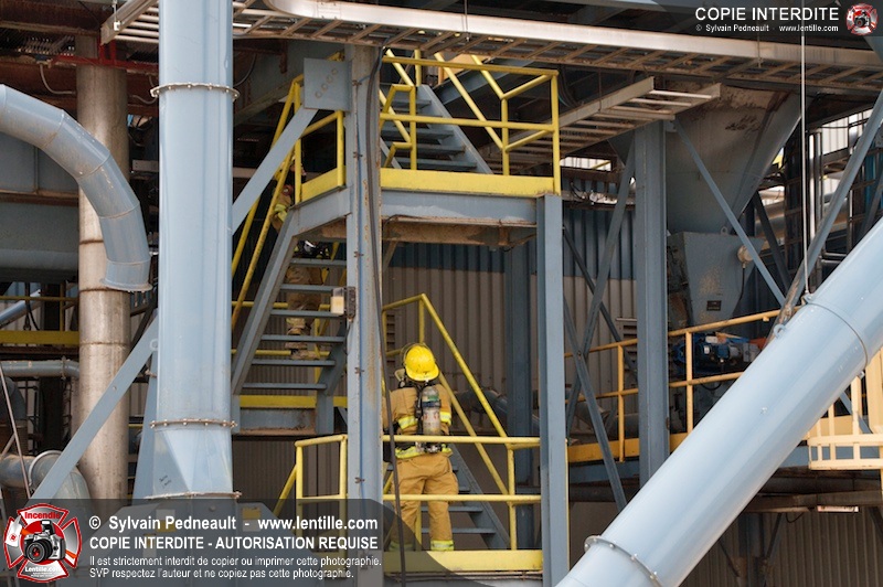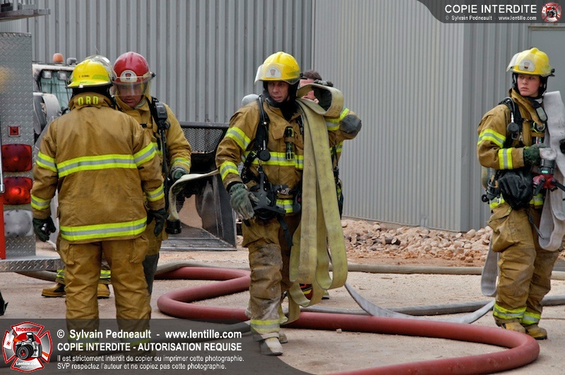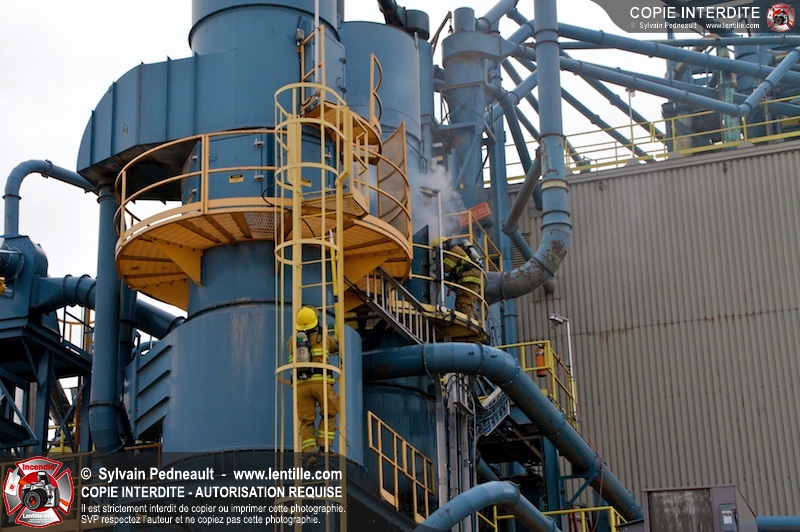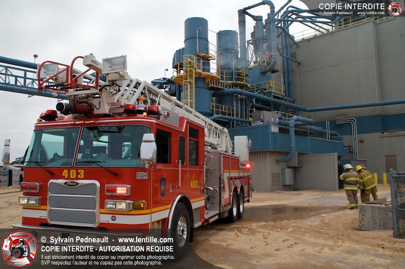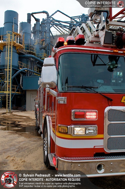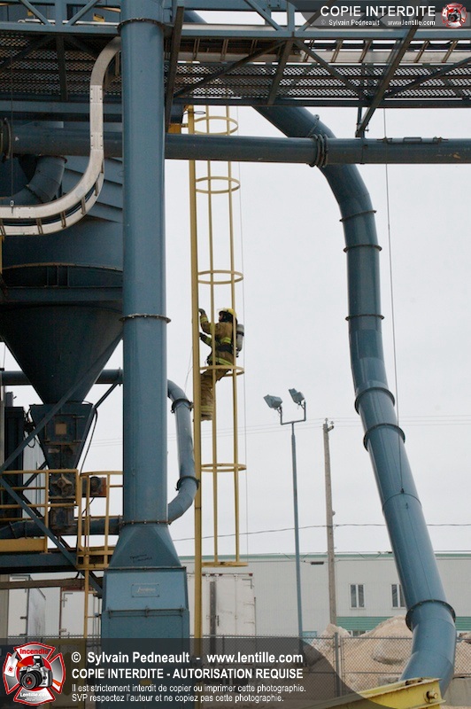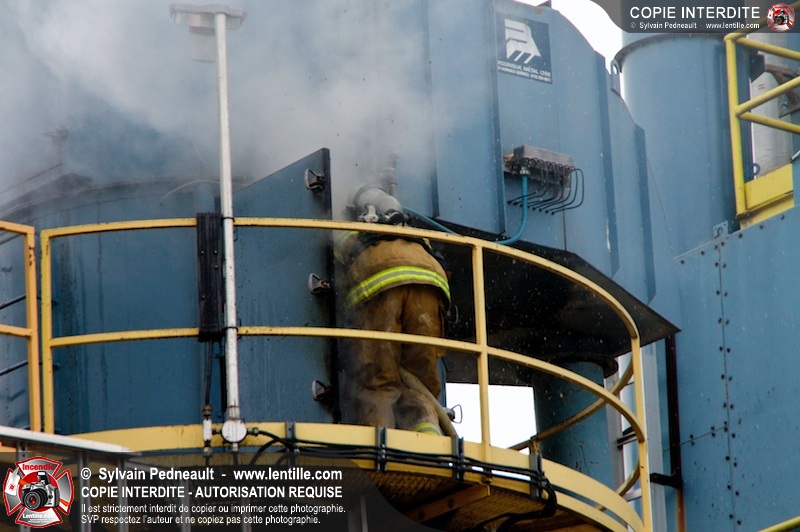 Les pompiers du Service de sécurité incendie de la Ville de Saint-Hyacinthe sont intervenus pour un feu d'industrie. L'incendie s'est heureusement limité à un dépoussiéreur à l'extérieur de l'usine. Fait intéressant, l'alimentation de la pompe d'attaque a été simplifiée et accélérée par la présence d'une borne d'incendie que le propriétaire de l'usine a fait installer à titre préventif à proximité des installations à risque.