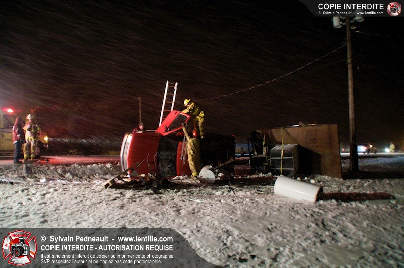 Les pompiers et les paramédics de Saint-Hyacinthe sont intervenus sur la route 137 entre Saint-Hyacinthe et St-Dominique pour un accident de la route impliquant un seul véhicule. Le conducteur n'a pas été blessé dans l'incident, mais a été pris en charge par la Sûreté du Québec. Au moment de l'accident, la chaussée était entièrement recouverte de glace vive.