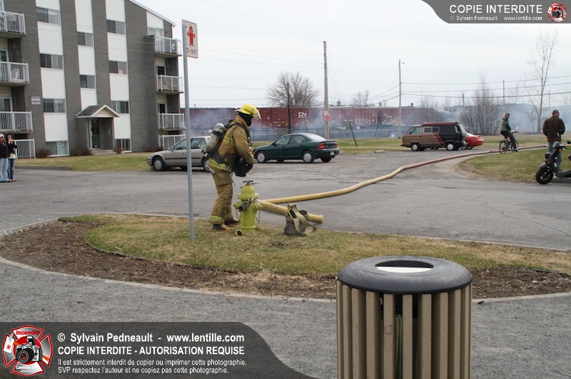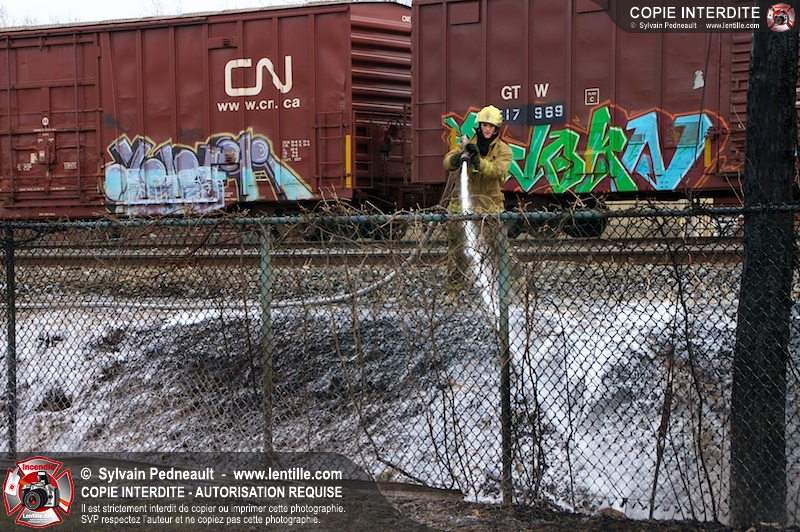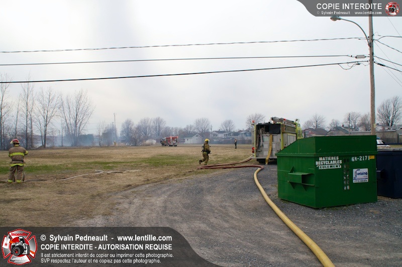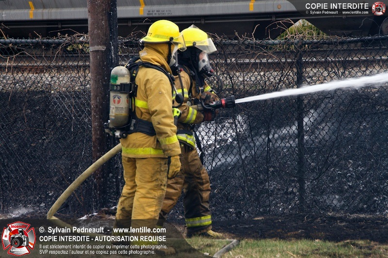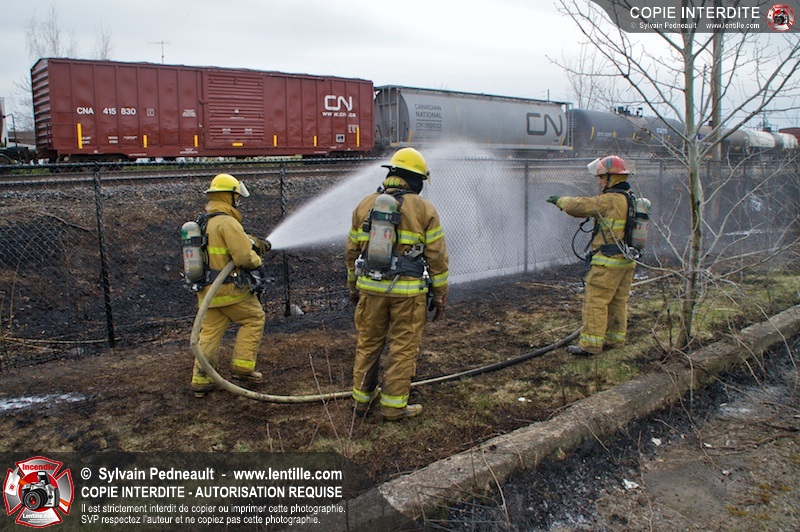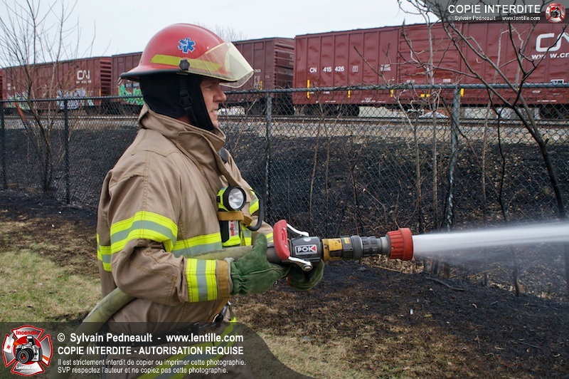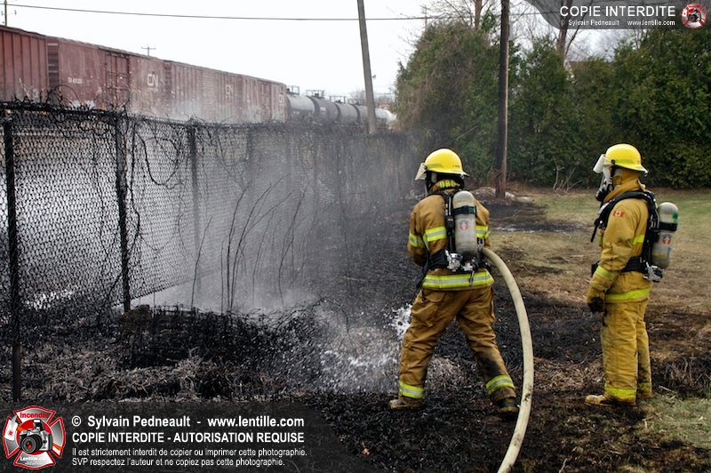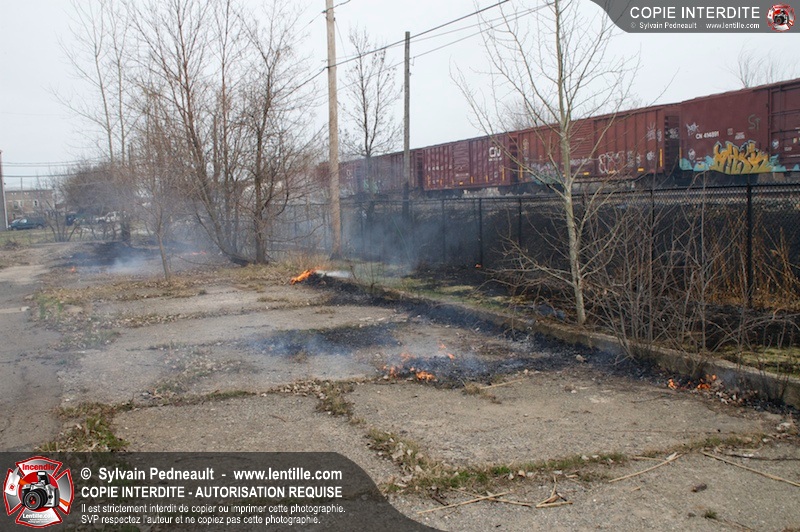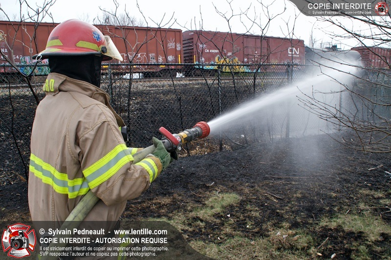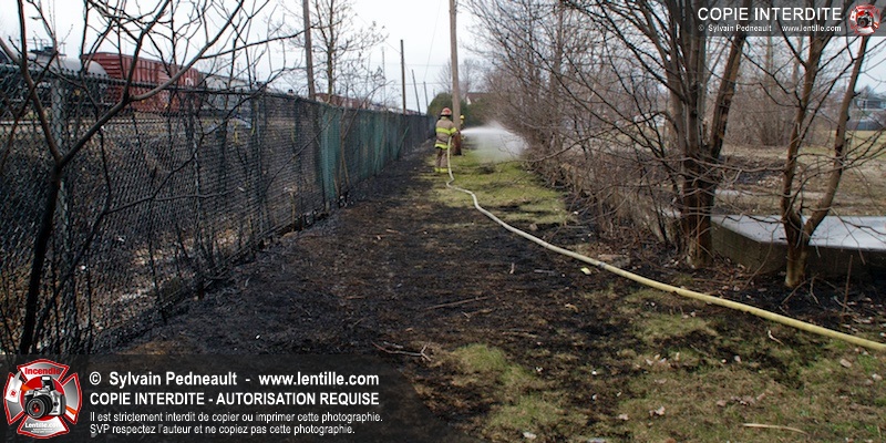 Le Service de sécurité incendie de Saint-Hyacinthe est intervenu à l'extrémité de la rue Papineau pour un feu de champ. L'incendie s'est propagé à une vitesse impressionnante le long de la voie ferrée du CN et menaçait une imposante haie de cèdres qui aurait à son tour, si le service était intervenu une minute plus tard, menacé une maison.