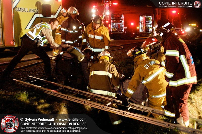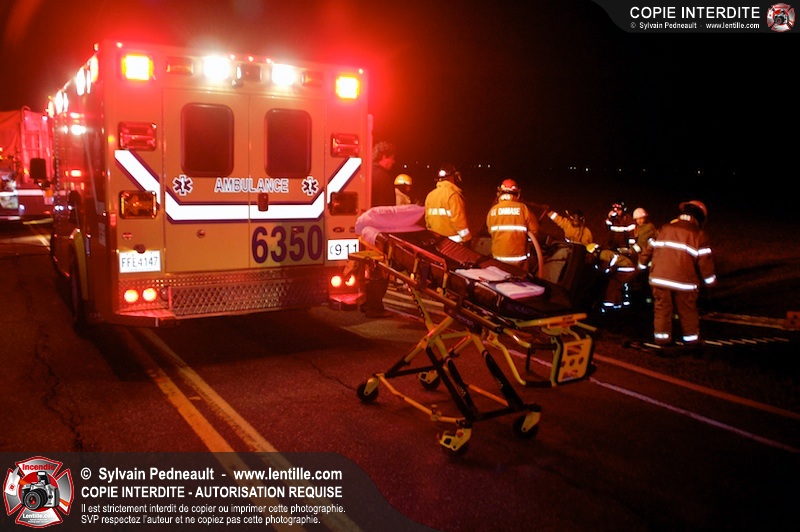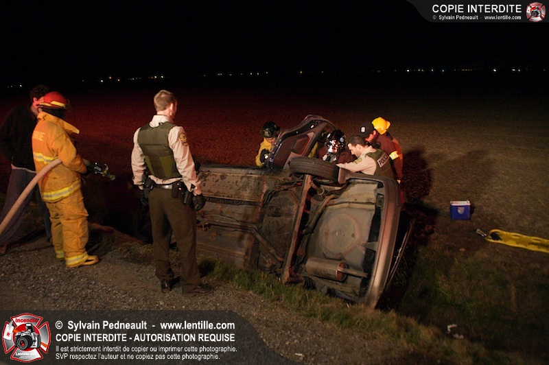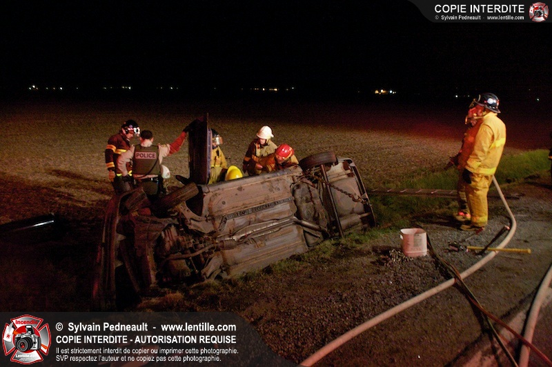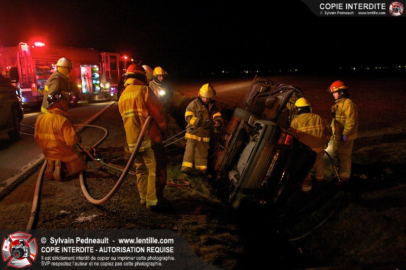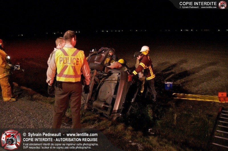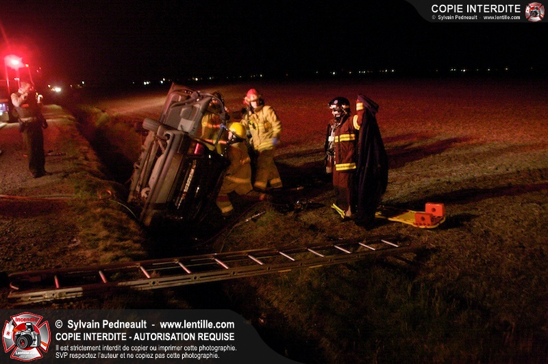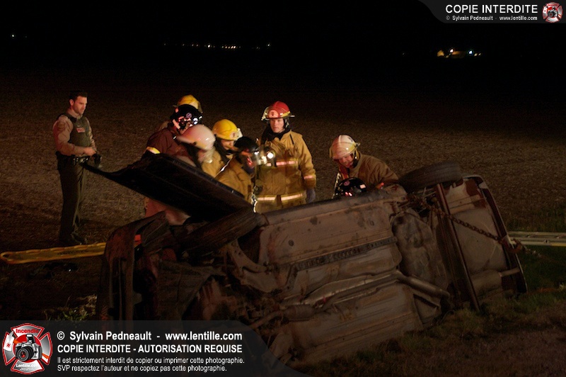 L'équipe de garde de la caserne 1 de Saint-Hyacinthe s'est rendue sur le Chemin Benoit à St-Damase pour une désincarcération automobile. Les pompiers de St-Damase sont intervenus en assistance à la désincarcération et pour la protection incendie. Les policiers de la Sûreté du Québec ainsi que l'unité paramédicale 6350 sont également intervenus.