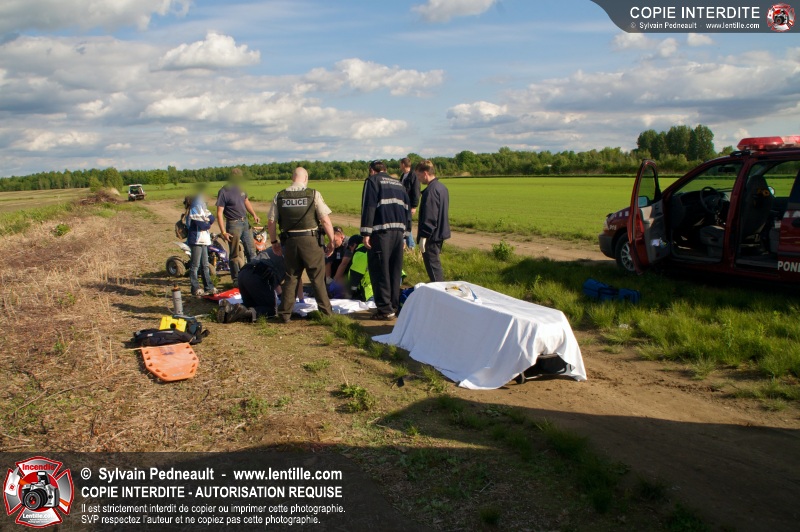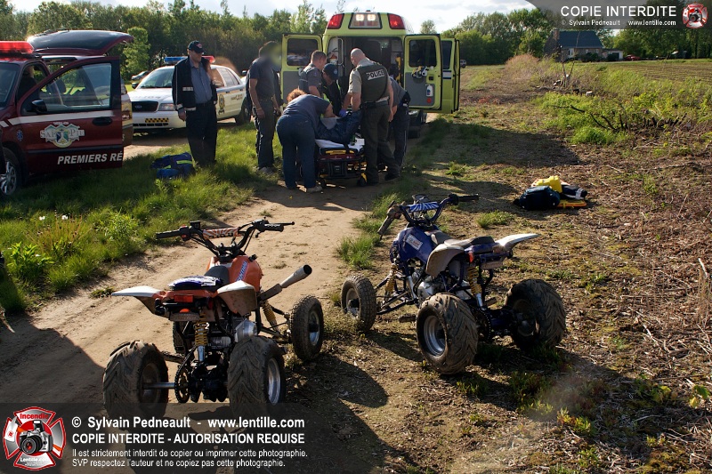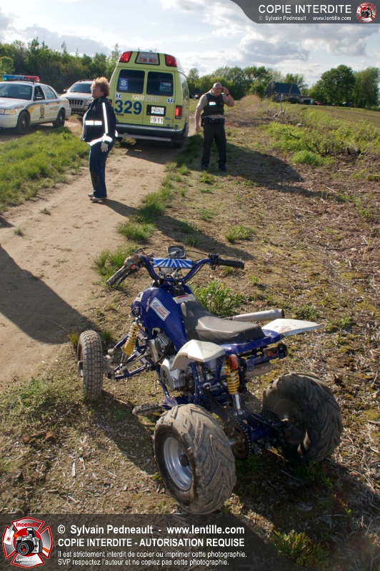 Un enfant de 6 ans a subit d'importantes blessures lorsqu'il a perdu la maîtrise du petit VTT qu'il conduisait. Sous l'impact, l'enfant a été projeté à quelques mètres du véhicule. Les Premiers Répondants de St-Pie, les paramédics de Saint-Hyacinthe et les policiers de la Sûreté du Québec sont rapidement intervenus pour secourir le très jeune conducteur.