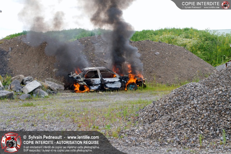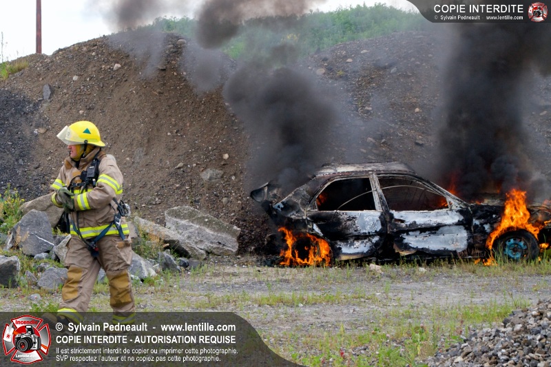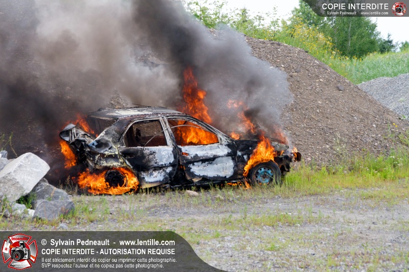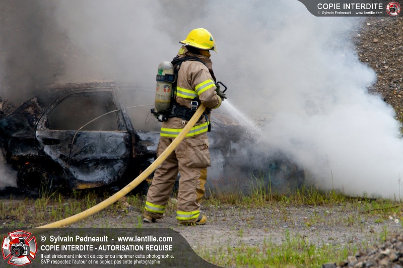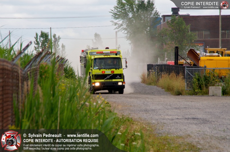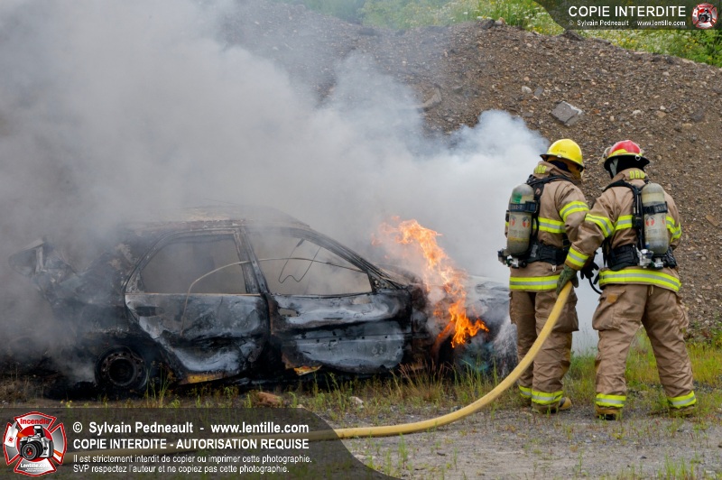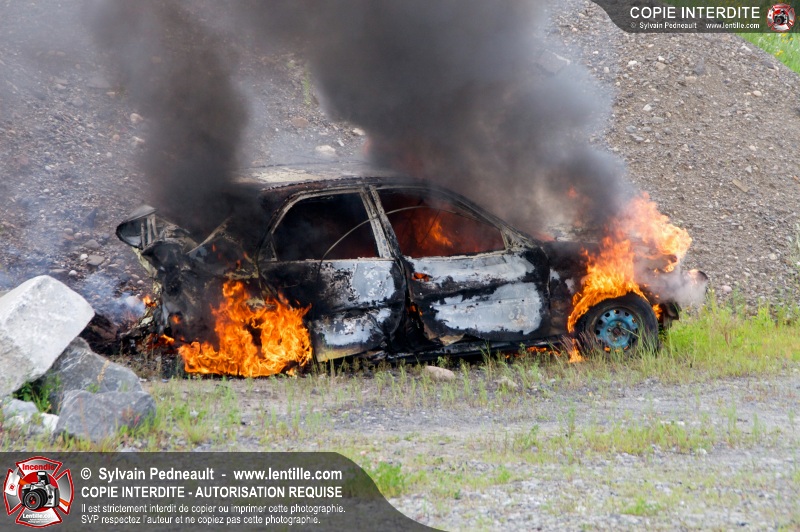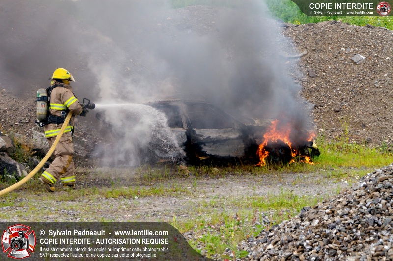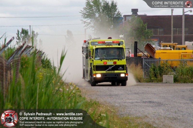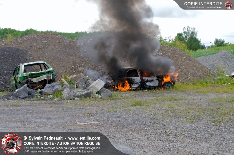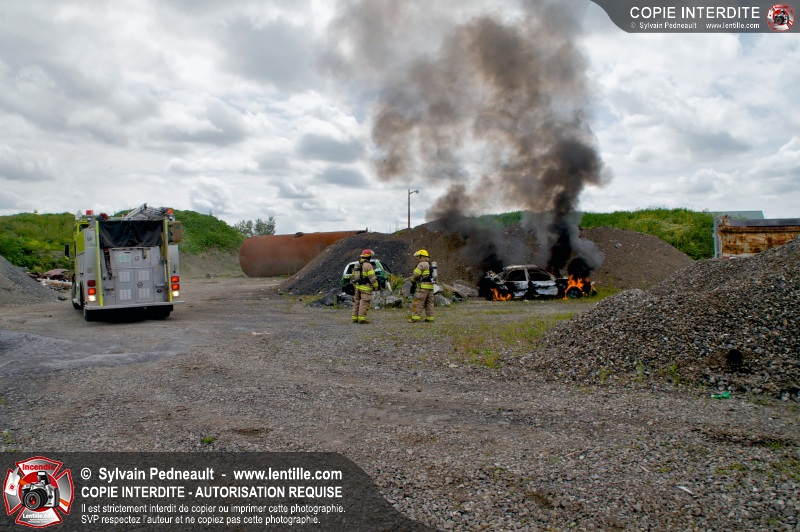 Pendant que le 201 répondait à un appel sur la rue Girouard, le 202 s'est rendu dans le secteur St-Joseph afin de trouver la provenance d'une colonne de fumée noire repérée par le 201. L'équipe de la caserne 2 s'est finalement rendue sur un terrain de la Ville où étaient entreposés temporairement des véhicules accidentés provenant du Derby de l'Expo de Saint-Hyacinthe, dont un était impliqué dans un incendie.