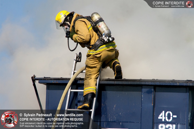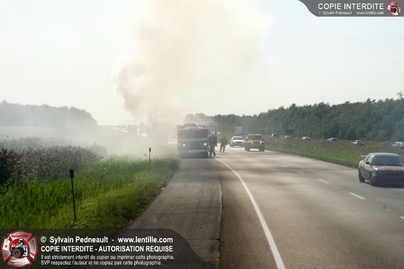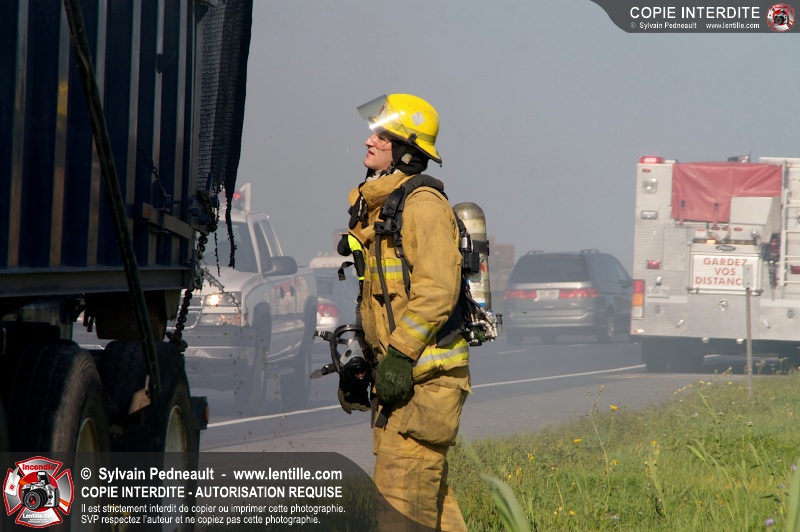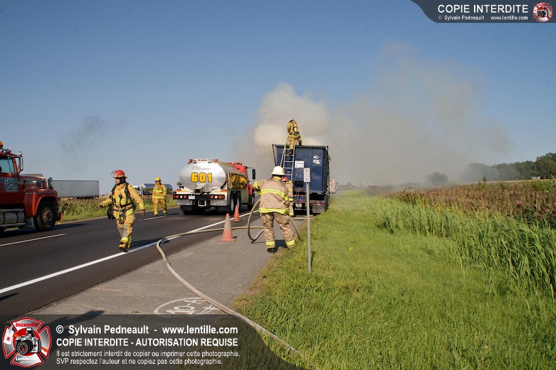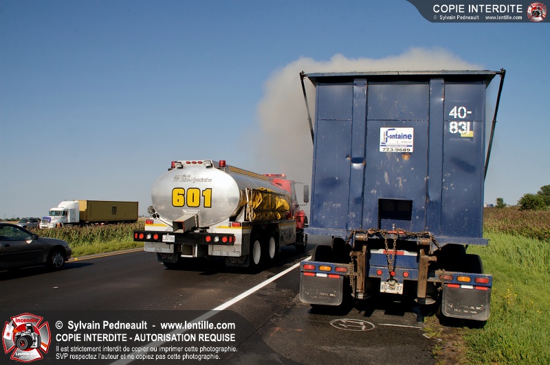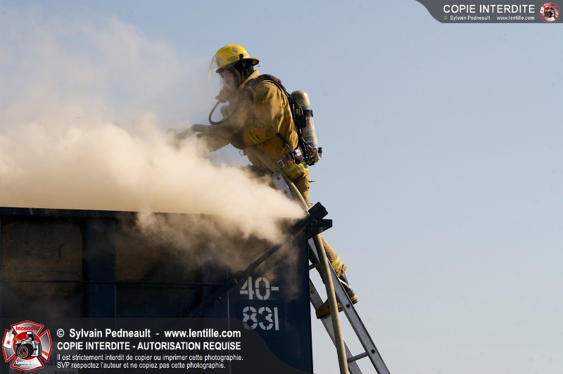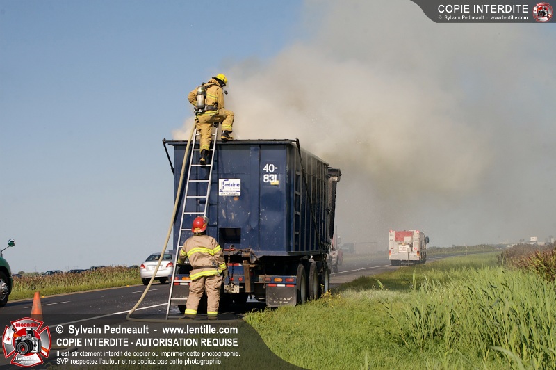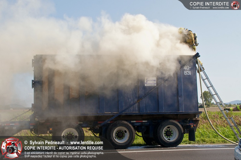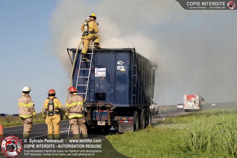 Les pompiers de Saint-Hyacinthe sont intervenus sur l'autoroute 20 à la hauteur du kilomètre 125 pour un feu de conteneur à déchets. Les pompiers ont débuté l'extinction en bordure de l'autoroute, puis ont escorté le camion et son chargement jusque dans la cour du propriétaire du conteneur pour en terminer l'extinction.