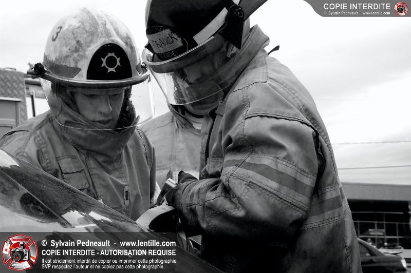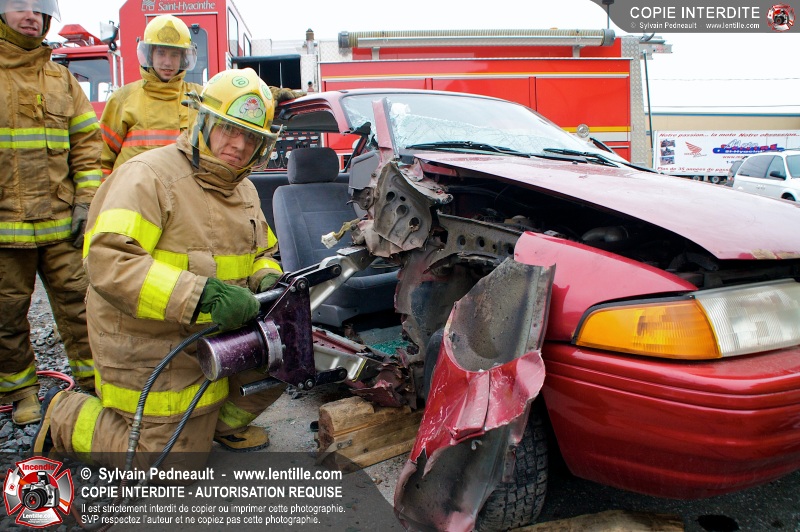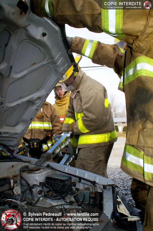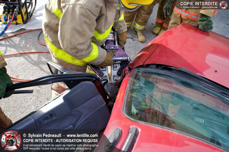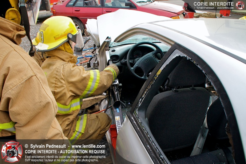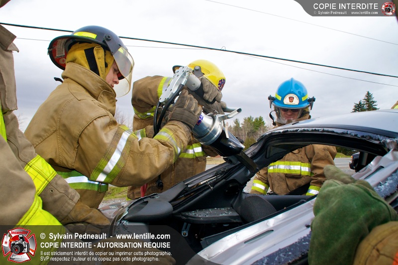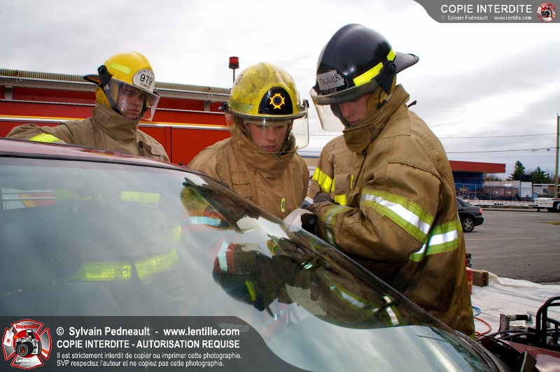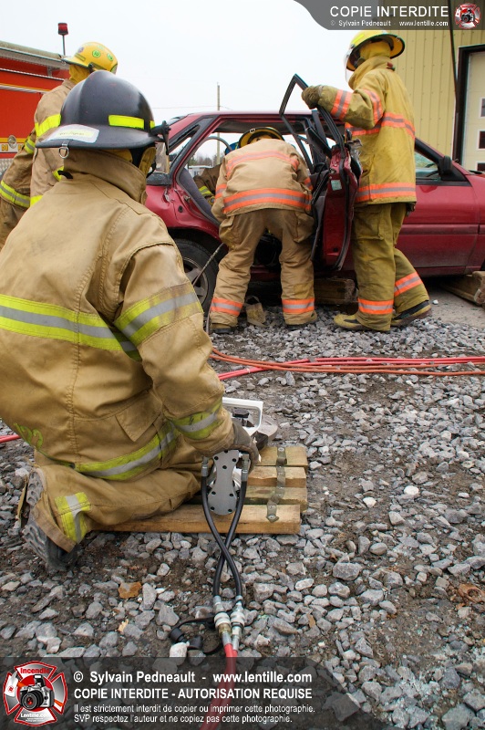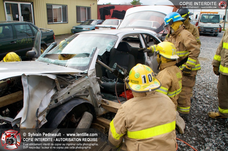 Des étudiants ont suivi une seconde partie de la formation pratique du cours de désincarcération au CFR de Saint-Hyacinthe. Ce cours fait partie du programme Pompier II de l'École Nationale des Pompiers du Québec.