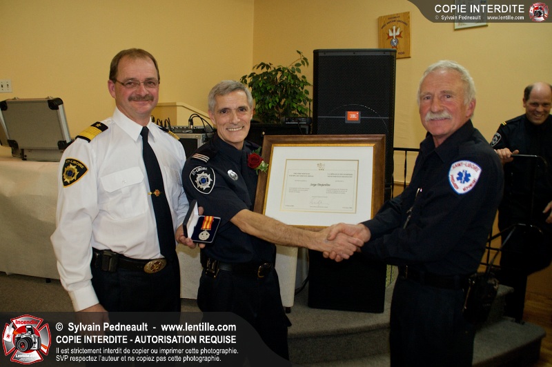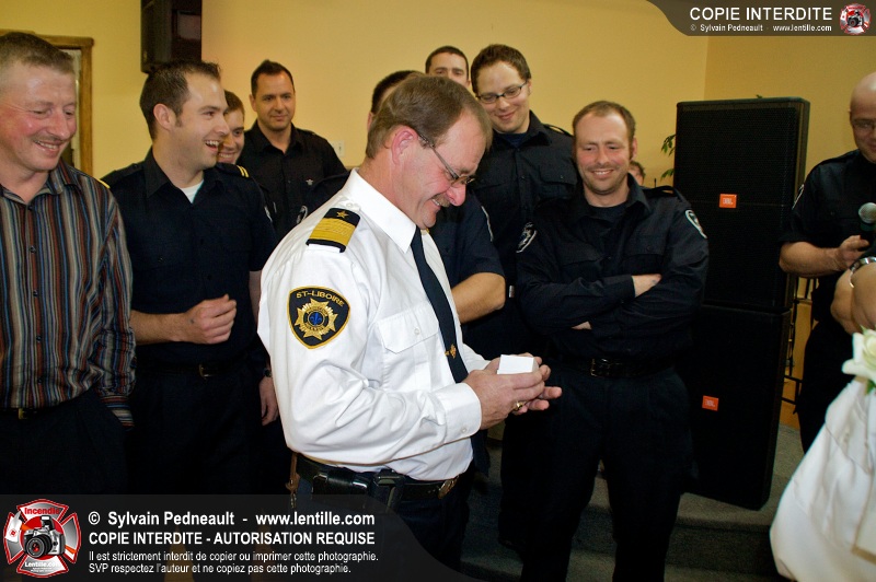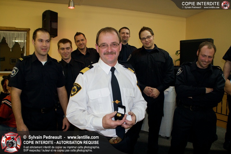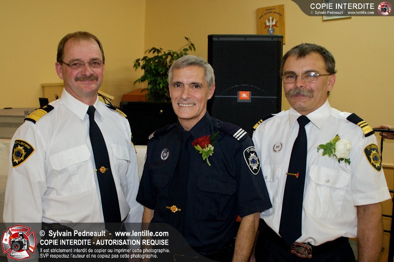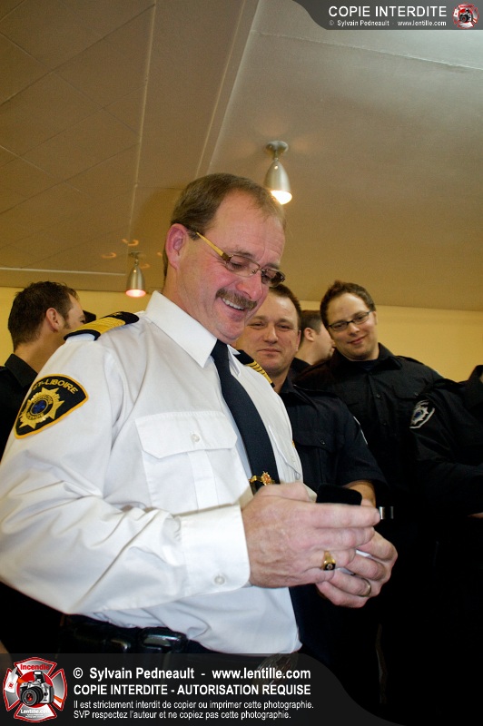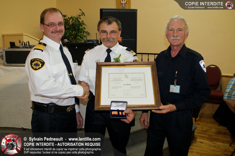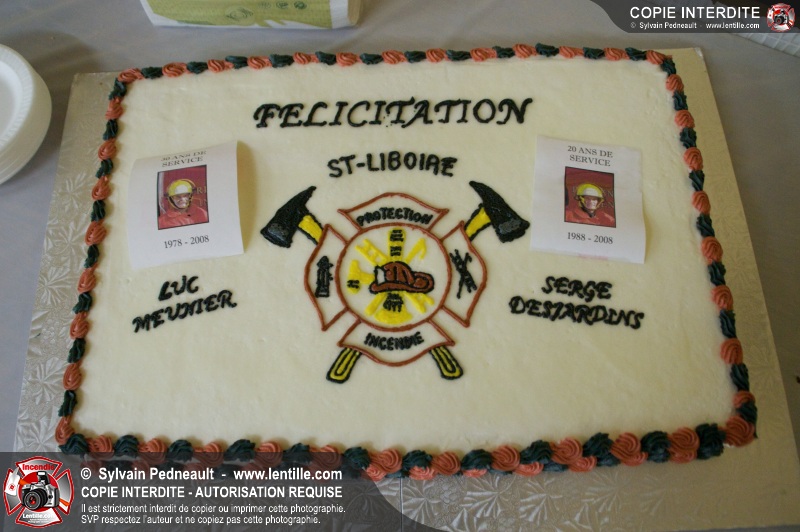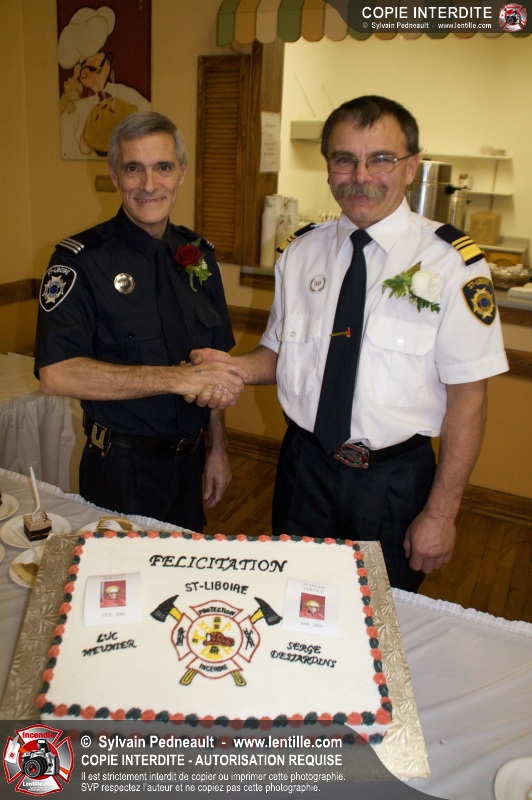 Lors d'une soirée organisée par le service incendie de St-Liboire, l'assistant-directeur Luc Meunier a été honoré pour ses 30 ans de service et le lieutenant Serge Desjardins pour ses 20 ans de service. Les pompiers ont profité de l'occasion pour gâter un peu leur directeur en lui remettant une superbe bague pompier.