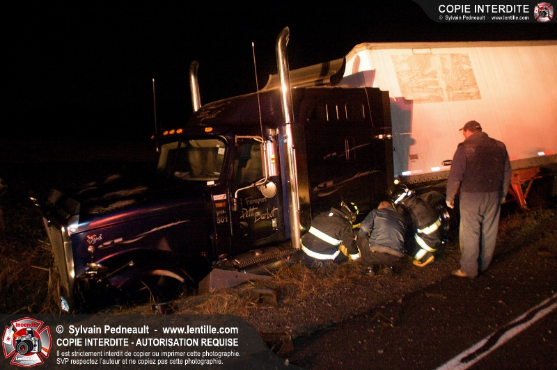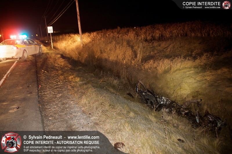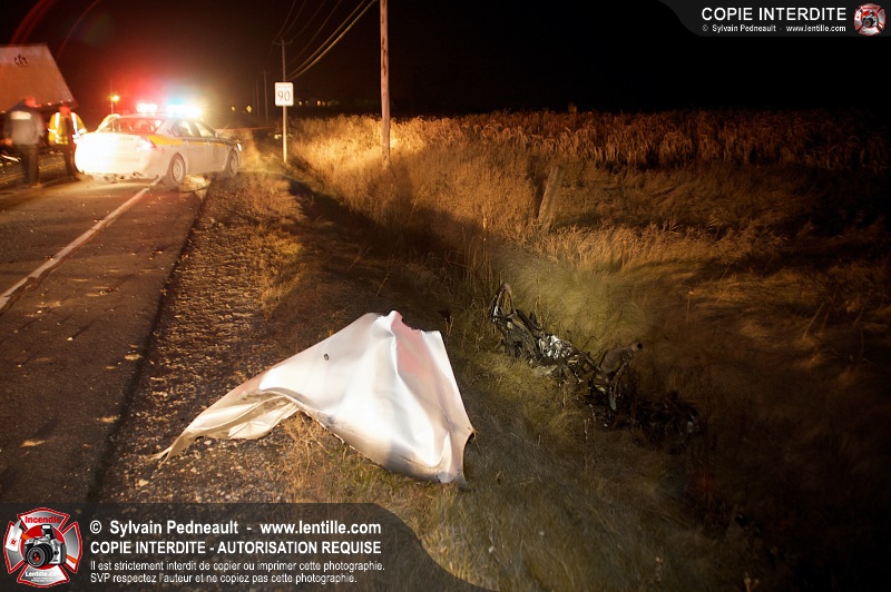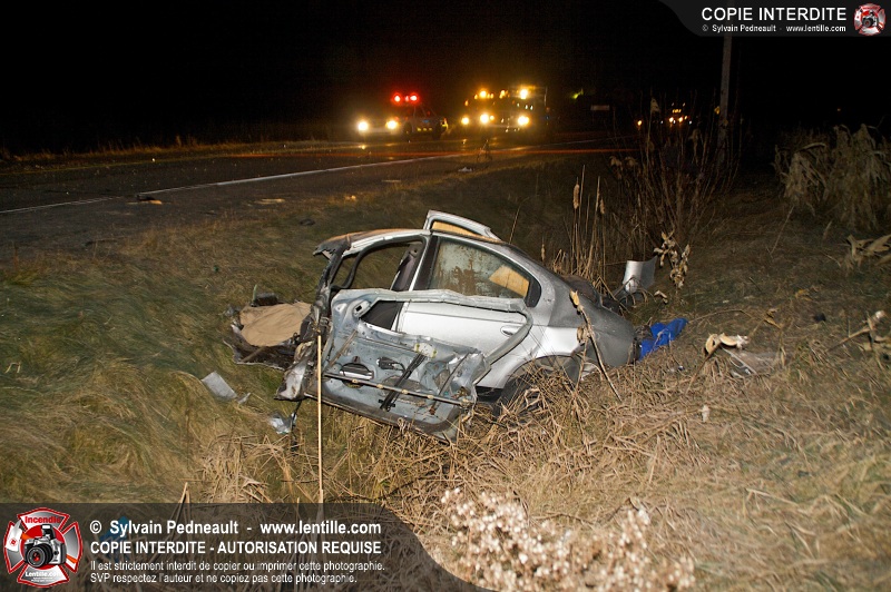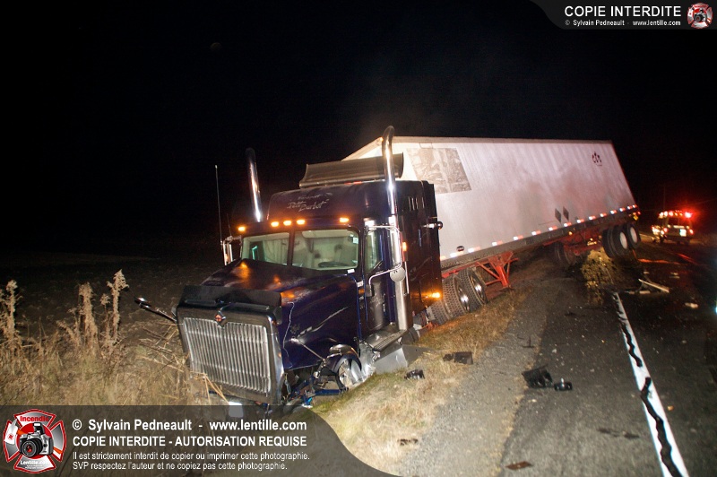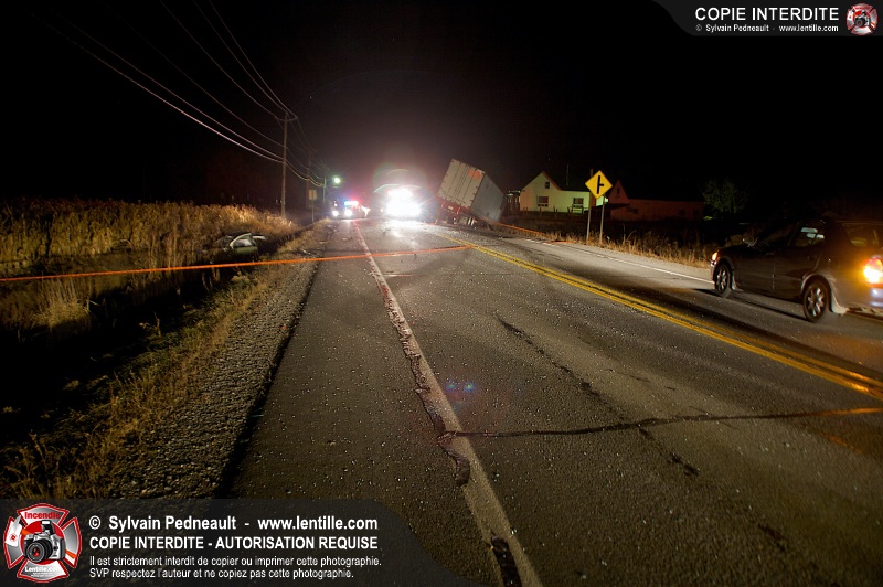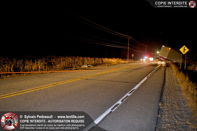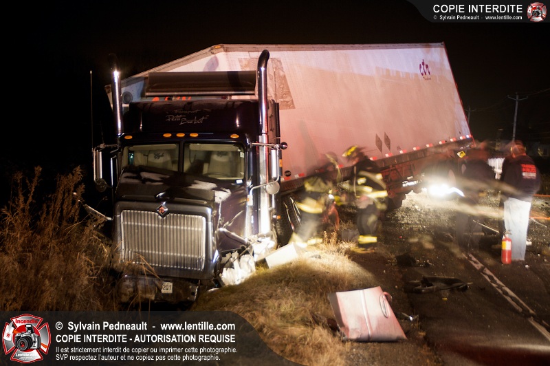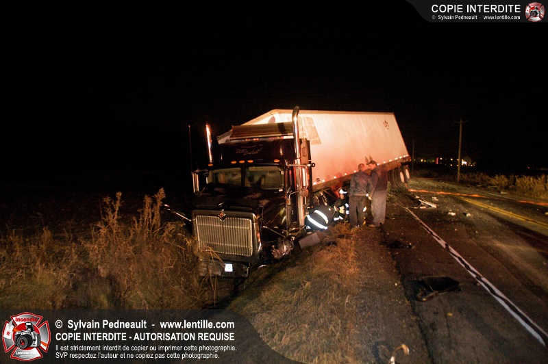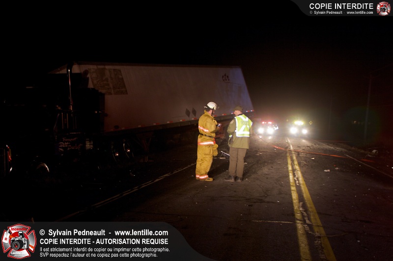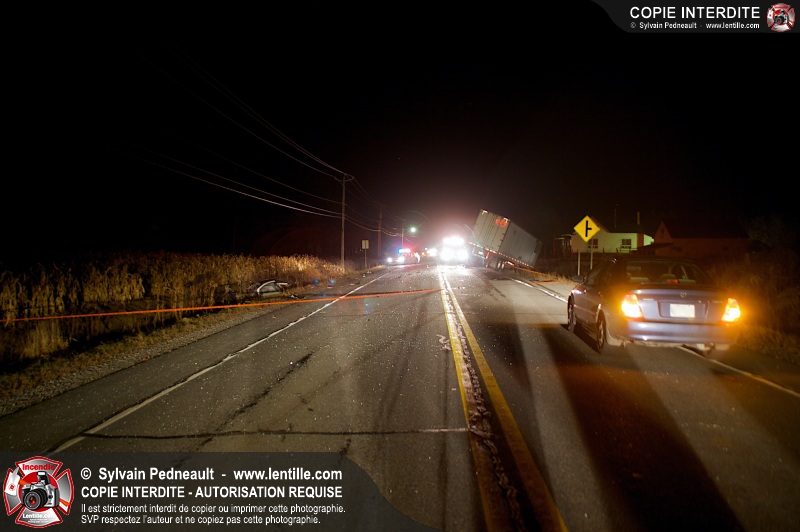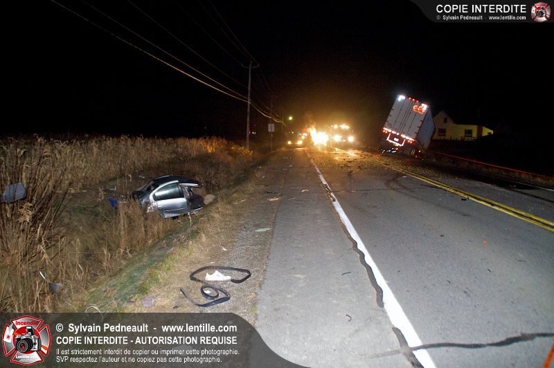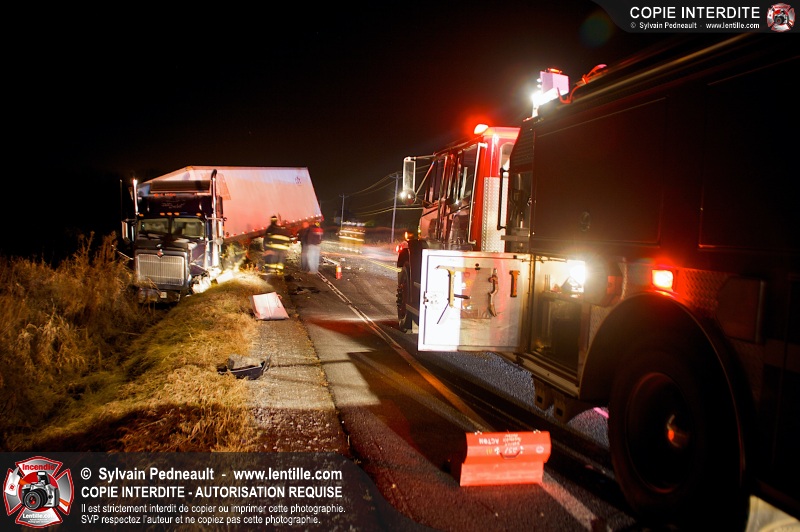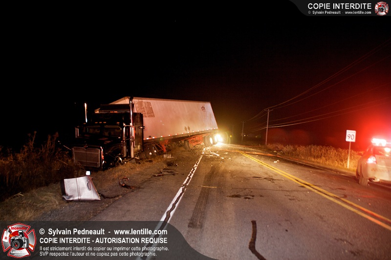 Un violent accident entre une automobile et un camion remorque est survenu sur la route 116 près de Acton Vale. Sous la force de l'impact, l'automobile a été sectionnée en deux et les occupants ont été projetés hors du véhicule. Un adolescent est malheureusement décédé sur place, alors que l'autre a subit de graves blessures. De la part de tous les intervenants sur place, nos plus sincères sympathies à la famille et aux amis de la jeune victime.