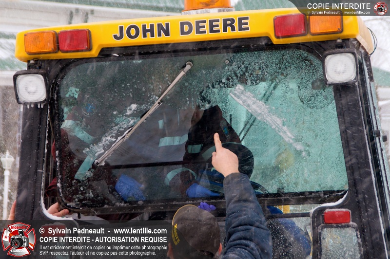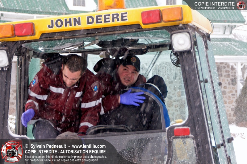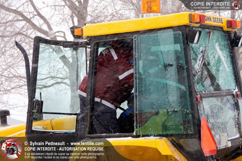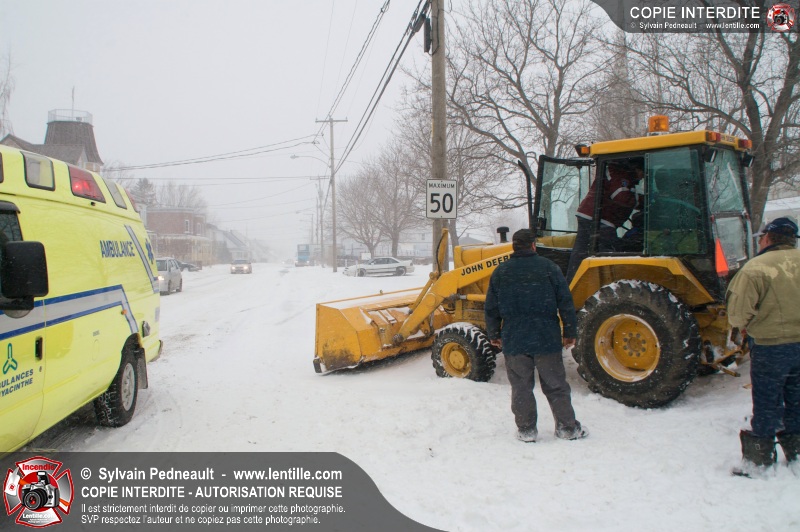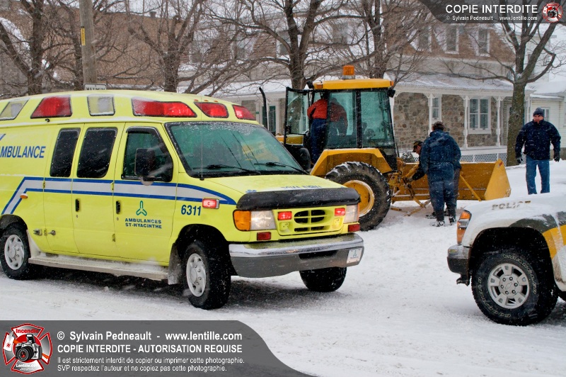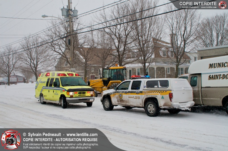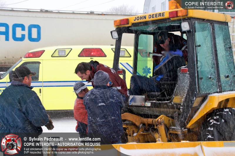 En pleine tempête de neige, les paramédics de Saint-Hyacinthe et les policiers de la Sûreté du Québec ont dû se rendre sur la rue principale à St-Dominique suite à une collision entre un camion remorque et un tracteur de déneigement. L'opérateur du tracteur a été blessé sérieusement et a été transporté au Centre hospitalier Honoré-Mercier.