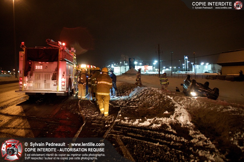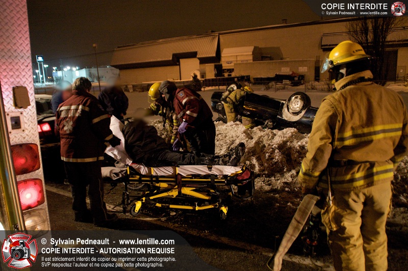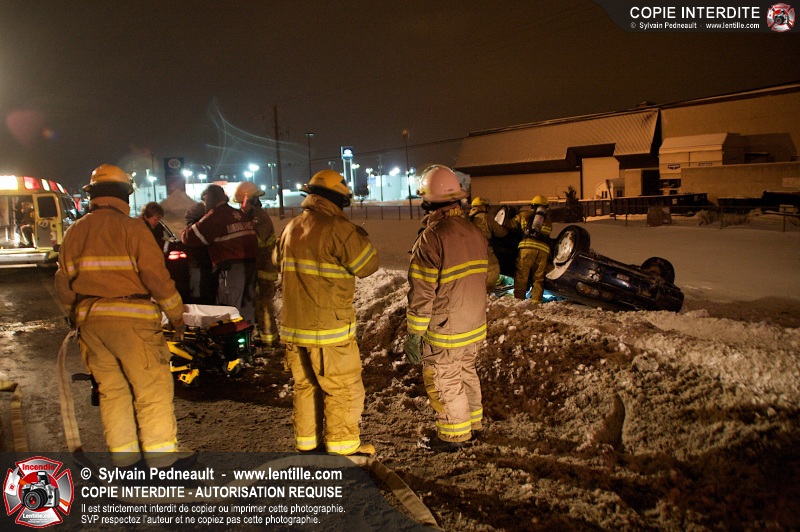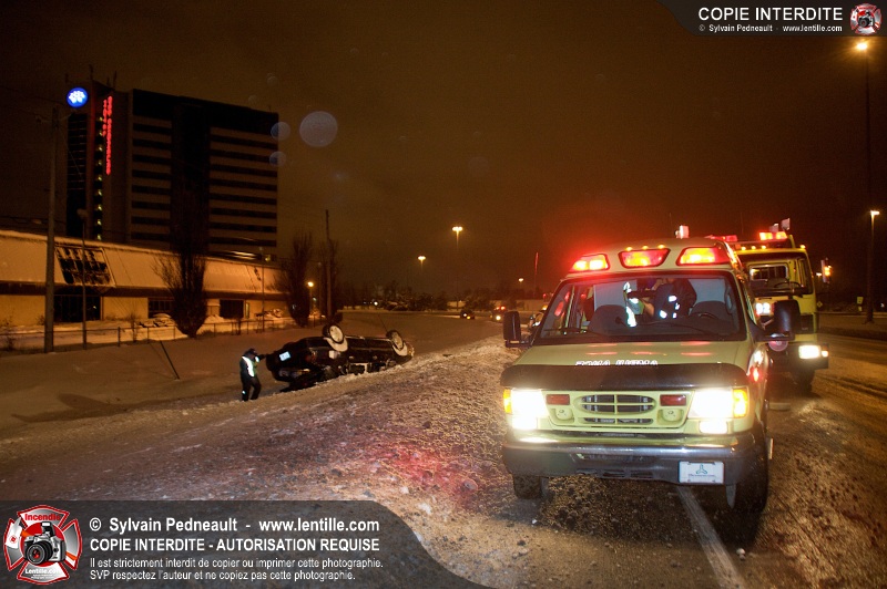Les pompiers, paramédics et policiers sont intervenus dans une bretelle d'accès de l'autoroute 20 Est pour un accident impliquant un seul véhicule.