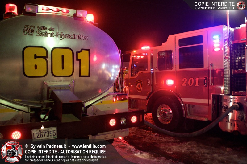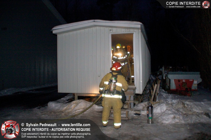 Les pompiers de Saint-Hyacinthe ont été appelés à se rendre dans le secteur Nord de la ville pour un feu de poulailler. Les détails initiaux faisaient état de fumée et flammes apparentes. Arrivés sur les lieux, les pompiers ont constaté qu'il s'agissait d'un très petit bâtiment et que l'incendie avait beaucoup diminué d'intensité grâce à l'intervention d'une personne sur les lieux.