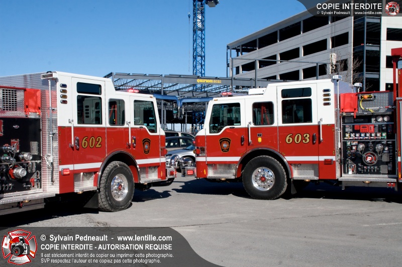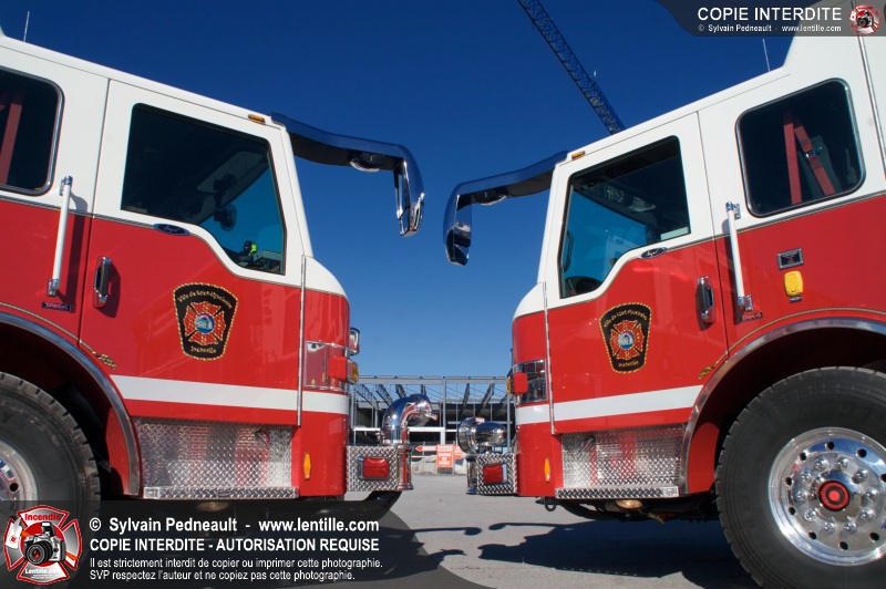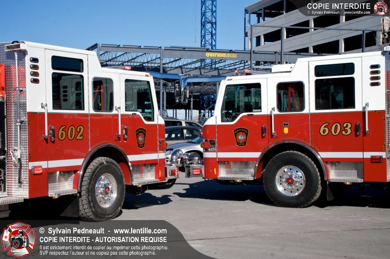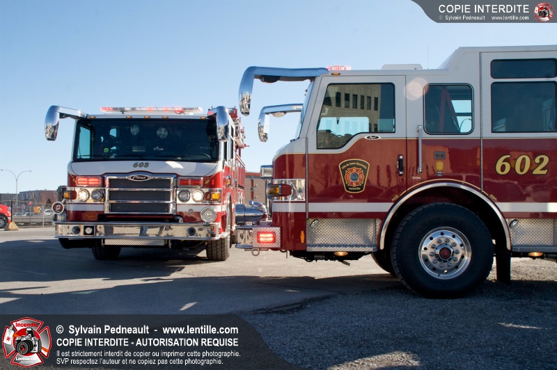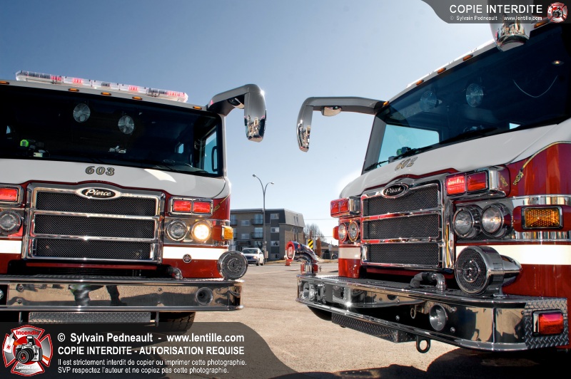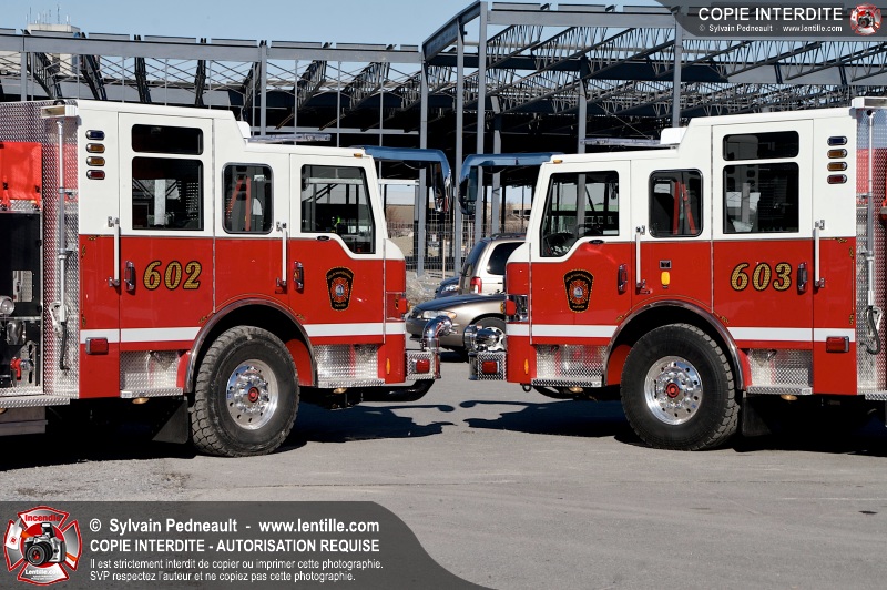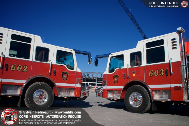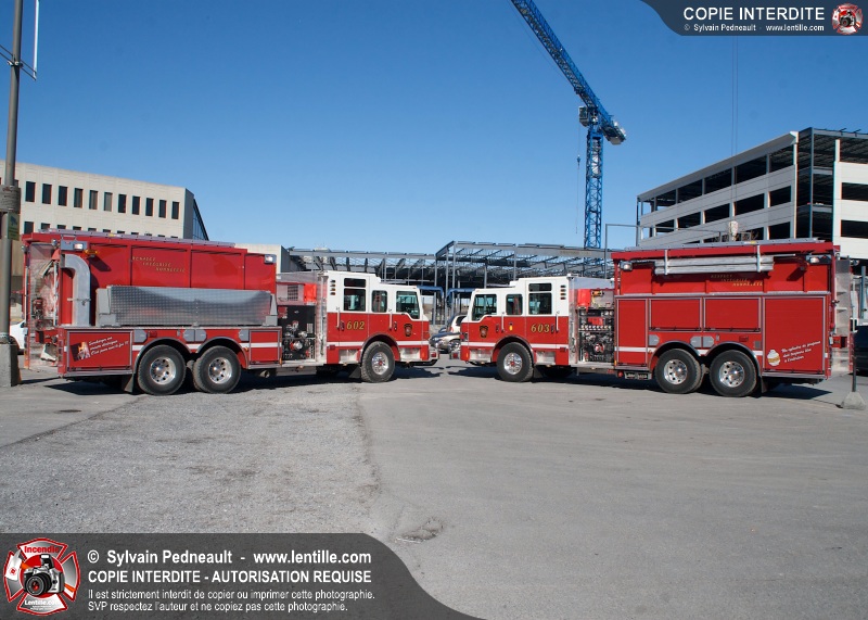 Les nouveaux jumeaux du Service de sécurité incendie de la Ville de Saint-Hyacinthe, les citernes-pompe 602 et 603, entreront bientôt en service! La Ville attend en fait des triplets, alors qu'un troisième camion identique sera livré bientôt.