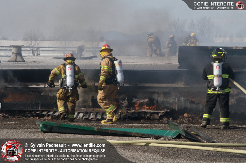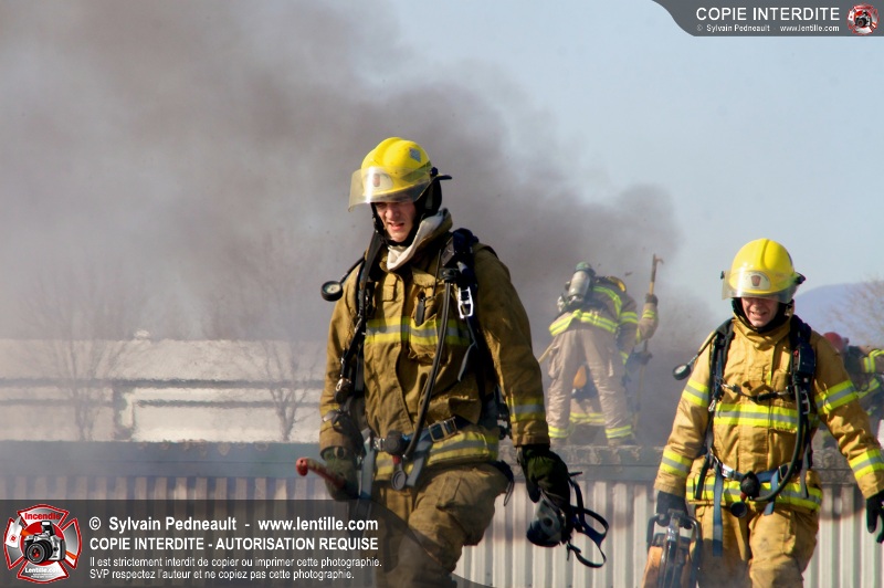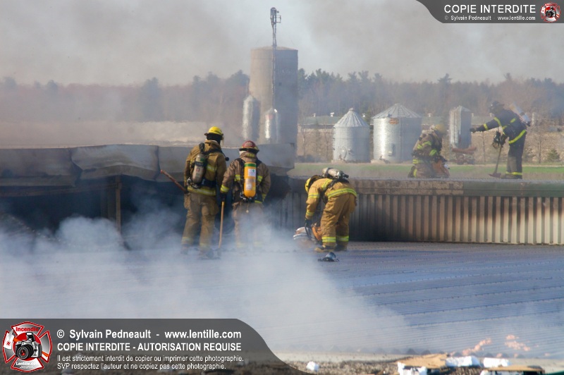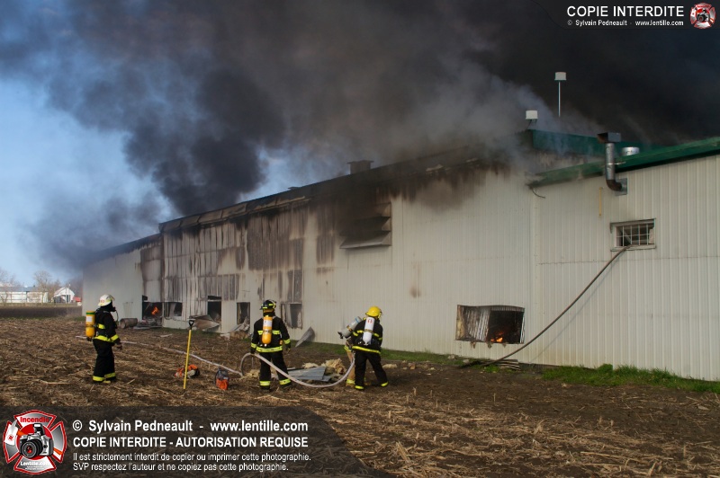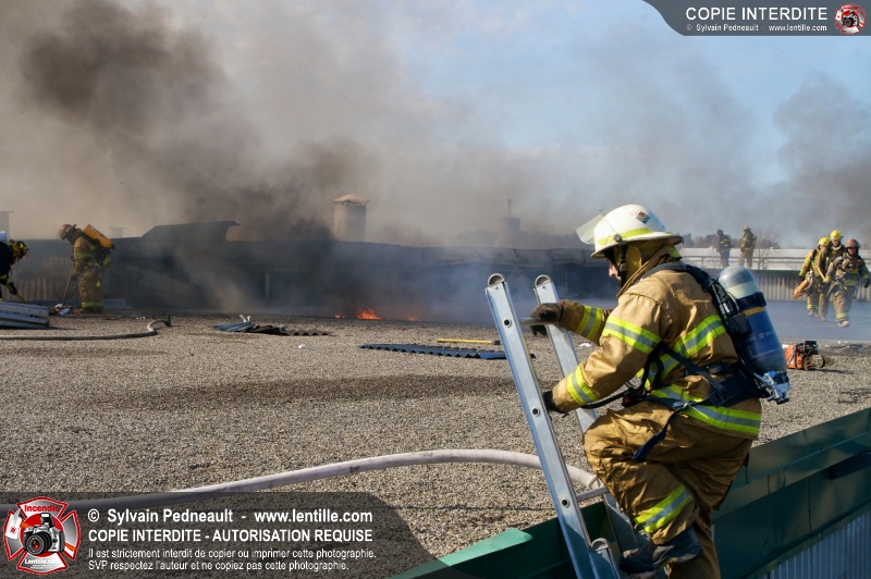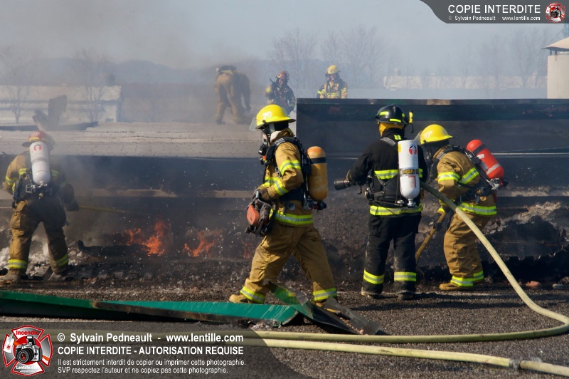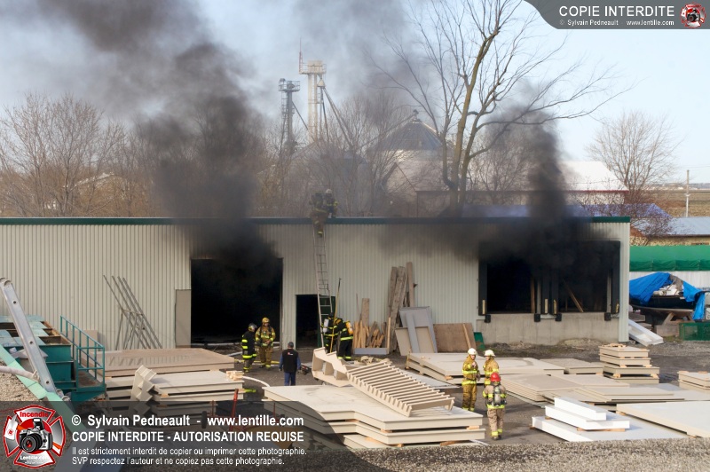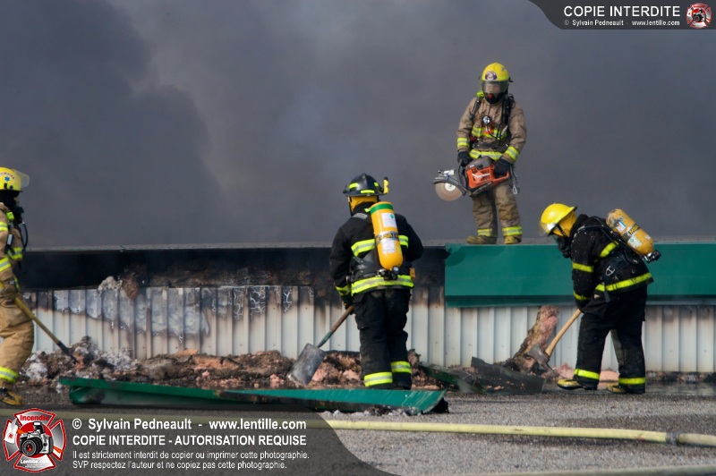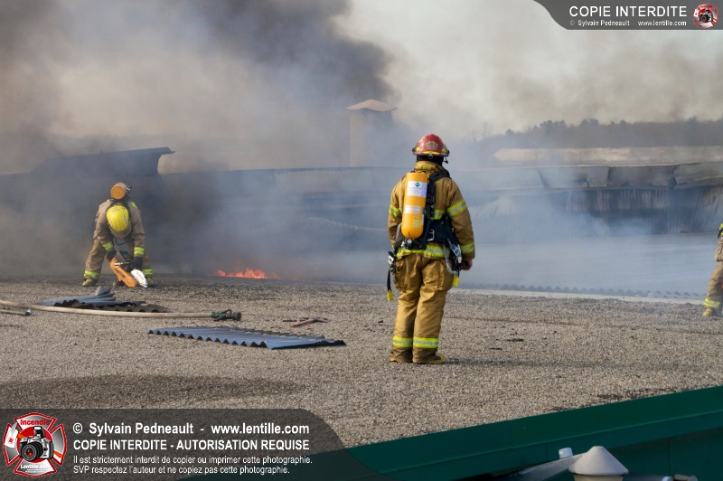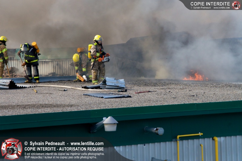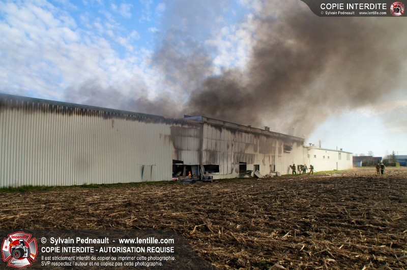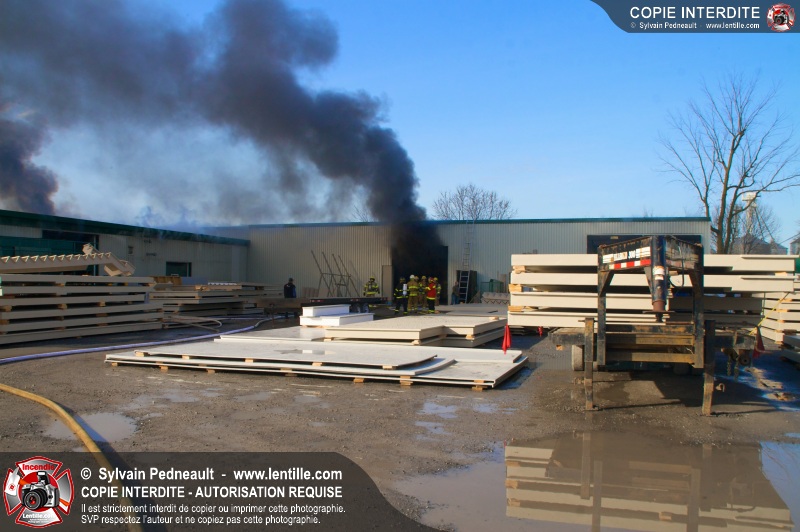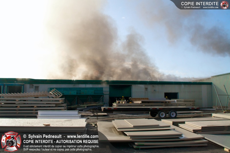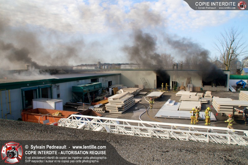 La plupart des services incendie de la MRC des Maskoutains ont été mis sur un pied d'alerte ce mardi matin alors qu'un incendie se propageait rapidement dans une grande usine de fibre de verre à St-Barnabé-Sud.