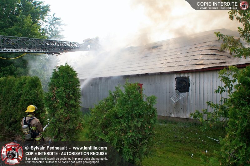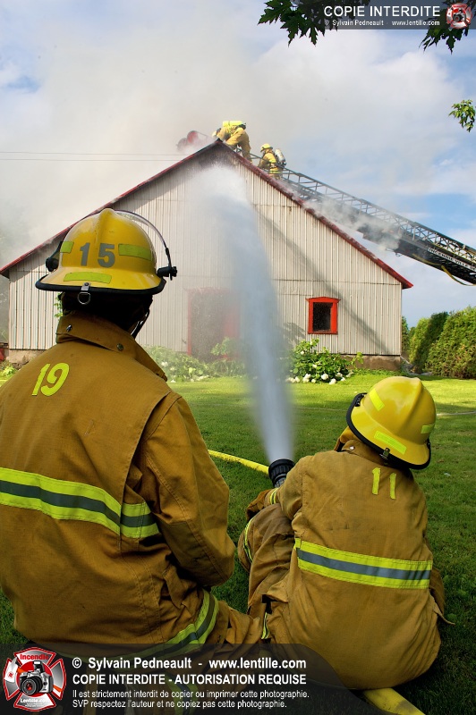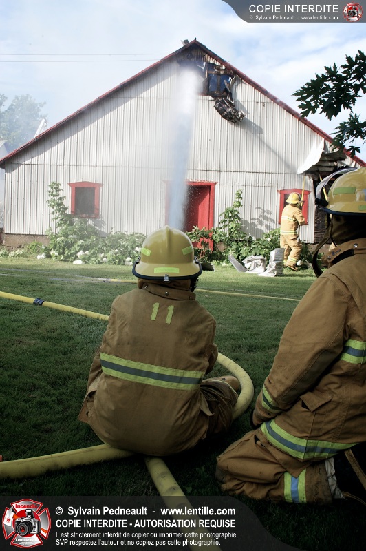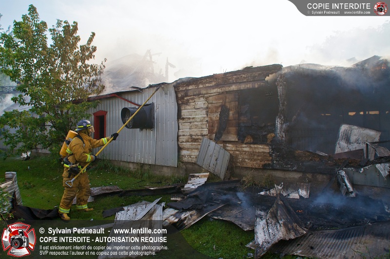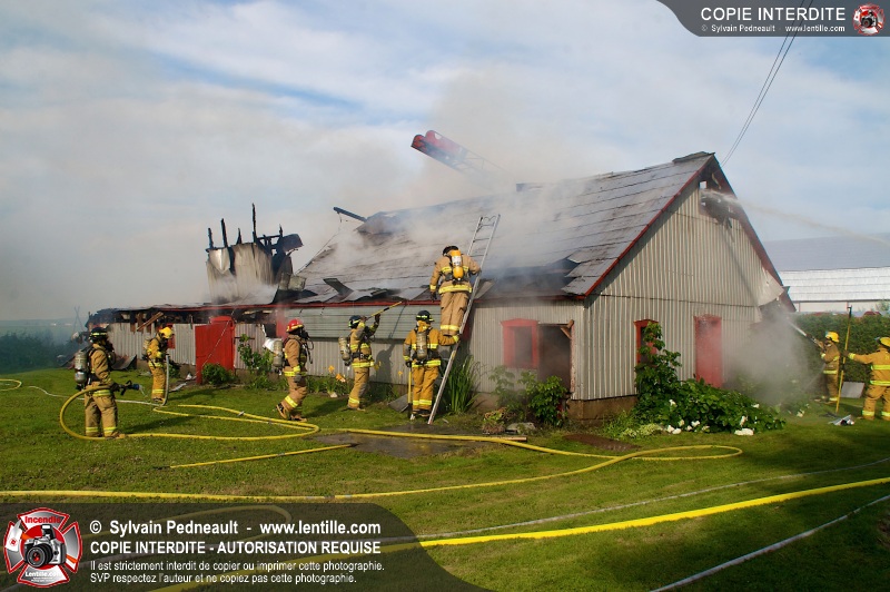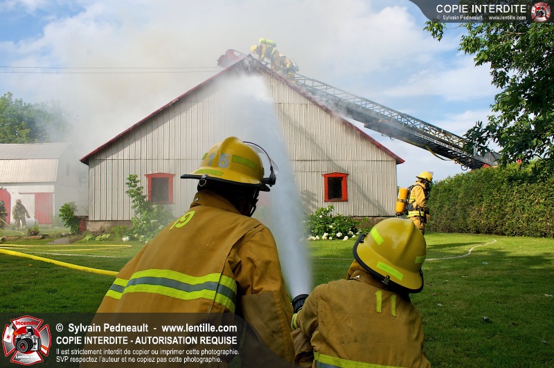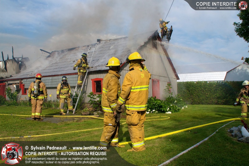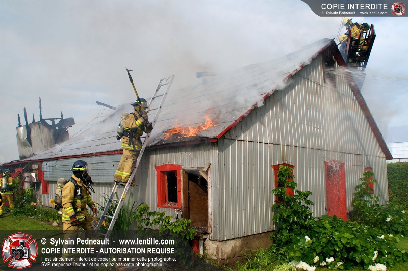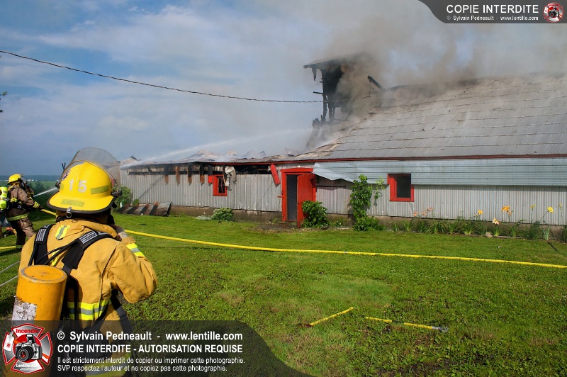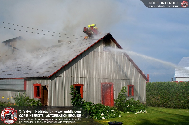 Un incendie a ravagé une ferme à St-Pie. Dû à la température ambiante élevée et à la nécessité d'assurer un approvisionnement adéquat en eau, le service incendie a fait appel aux pompiers de Saint-Hyacinthe, St-Dominique et St-Damase.