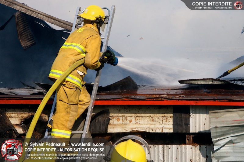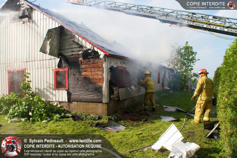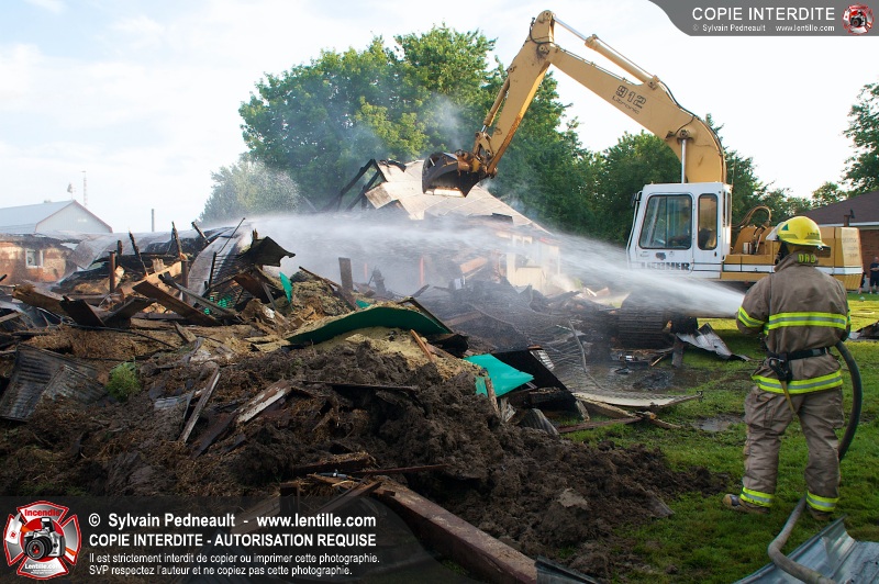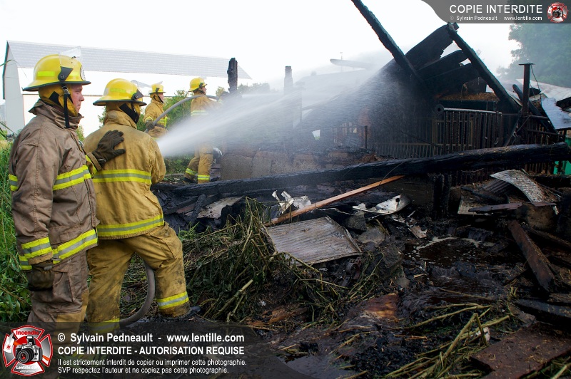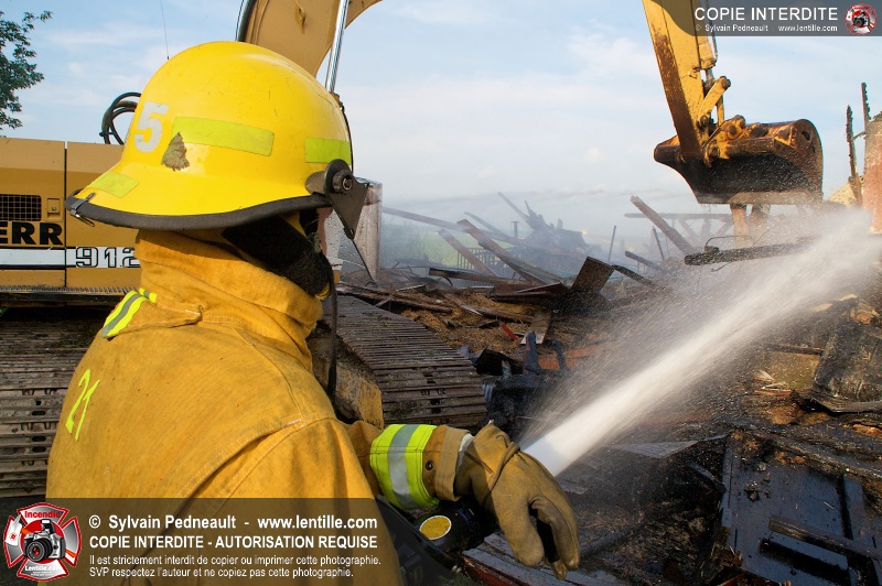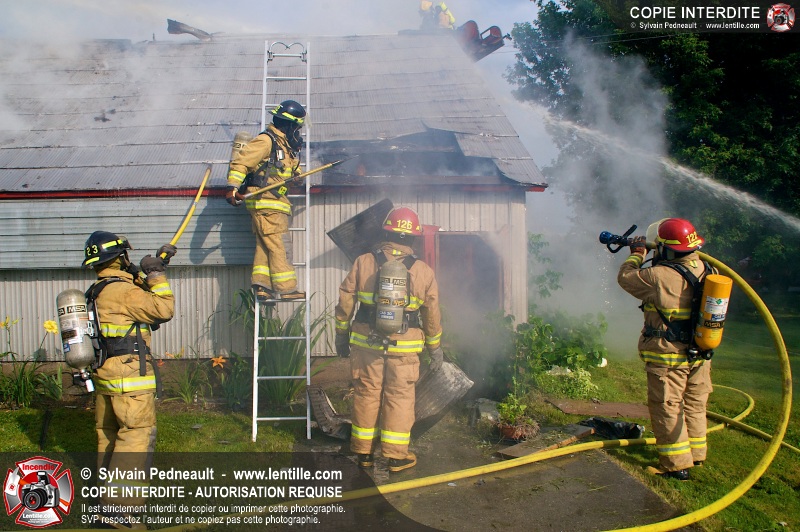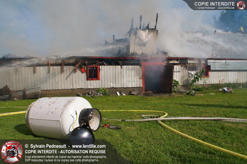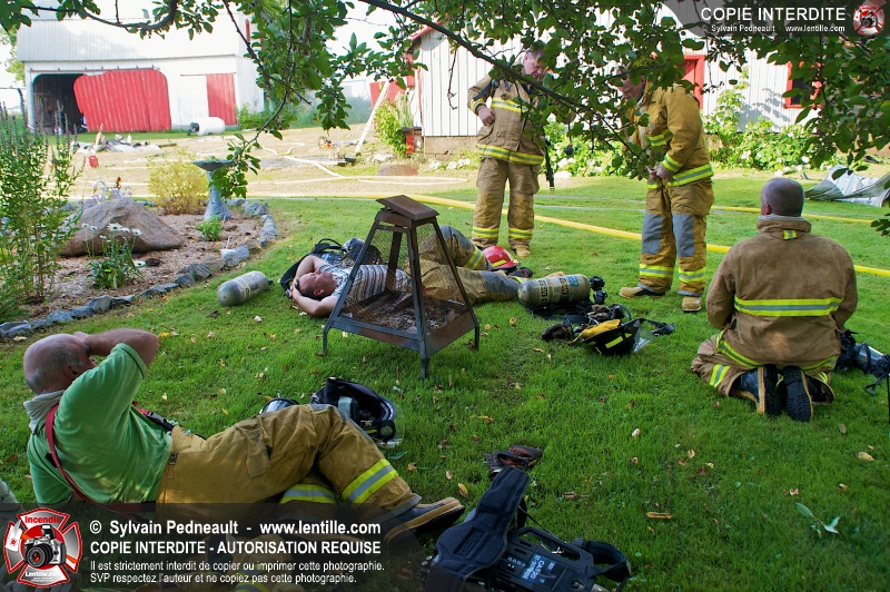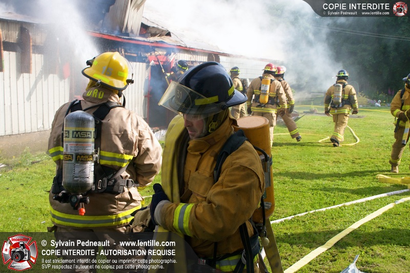Un incendie a ravagé une ferme à St-Pie. Dû à la température ambiante élevée et à la nécessité d'assurer un approvisionnement adéquat en eau, le service incendie a fait appel aux pompiers de Saint-Hyacinthe, St-Dominique et St-Damase.
