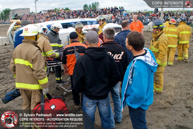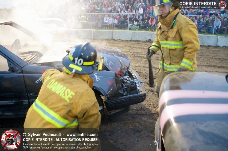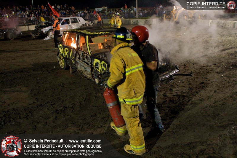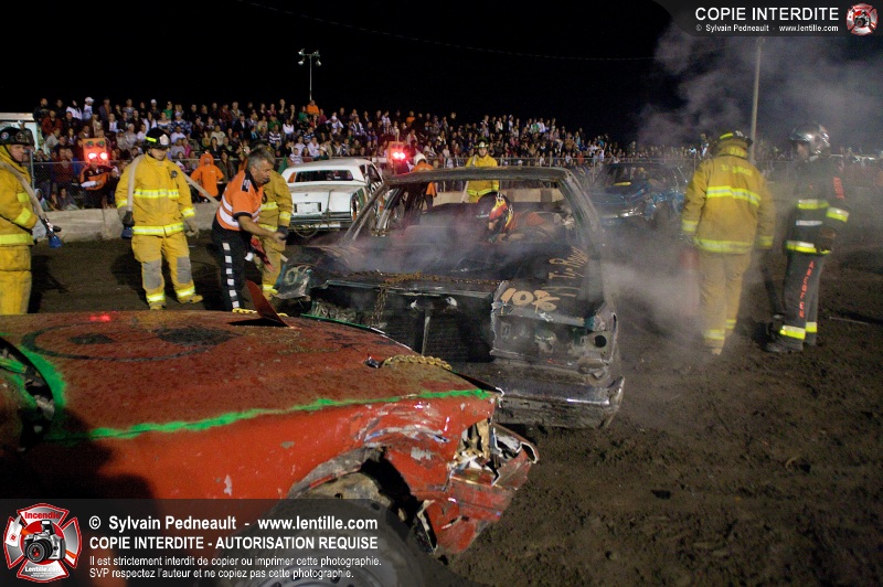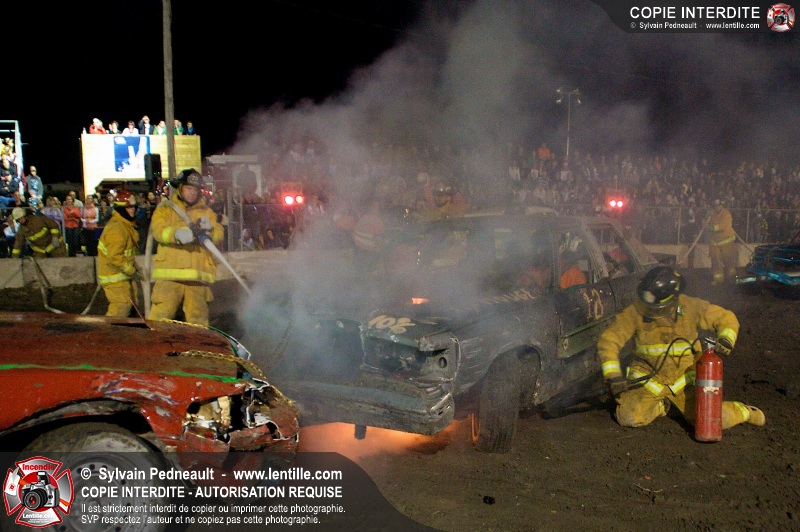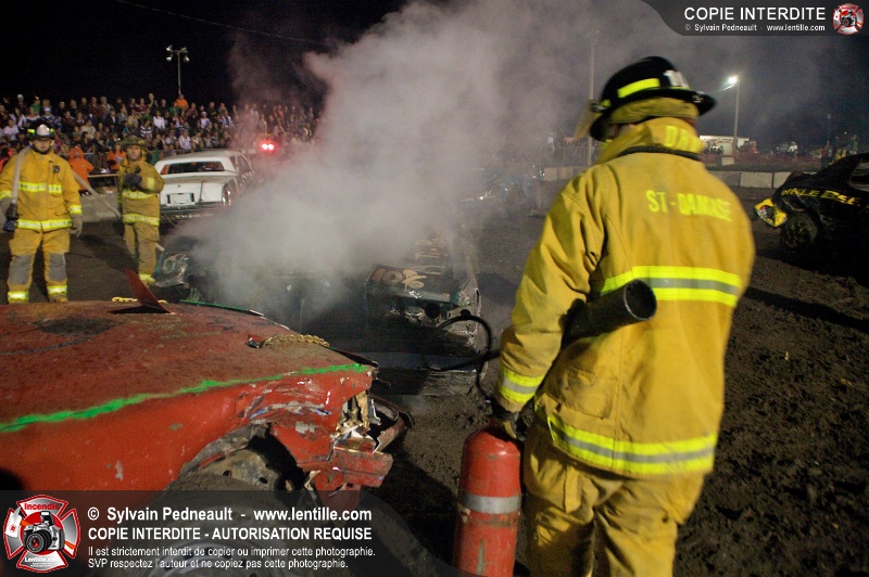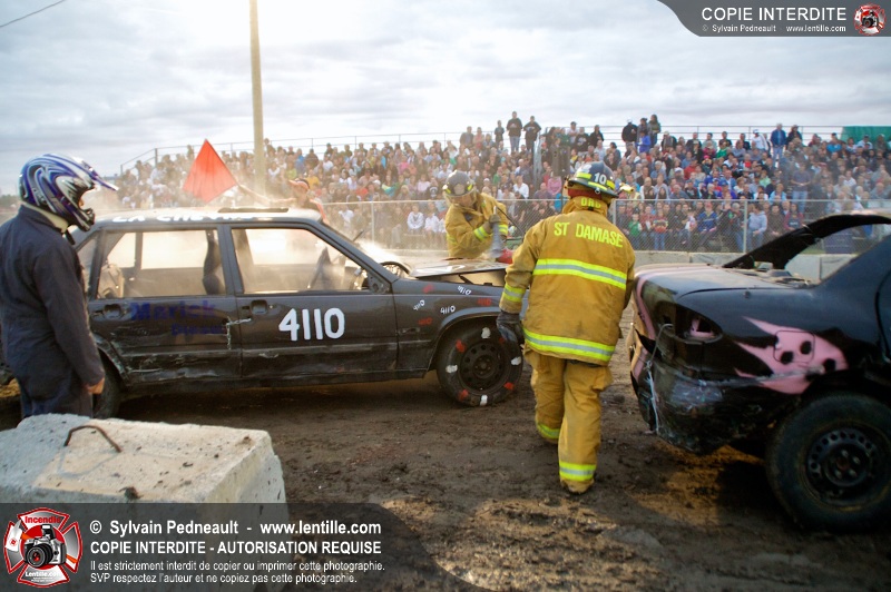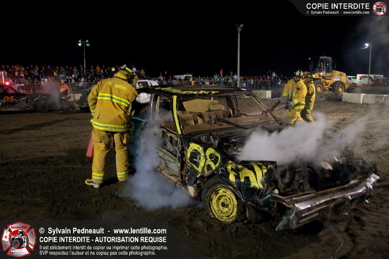 Le Festival du Maïs de St-Damase a présenté encore cette année un derby de démolition. Le Service incendie de St-Damase et l'équipe Pro-Médic étaient sur place en cas d'incendie ou d'accident sur la piste.