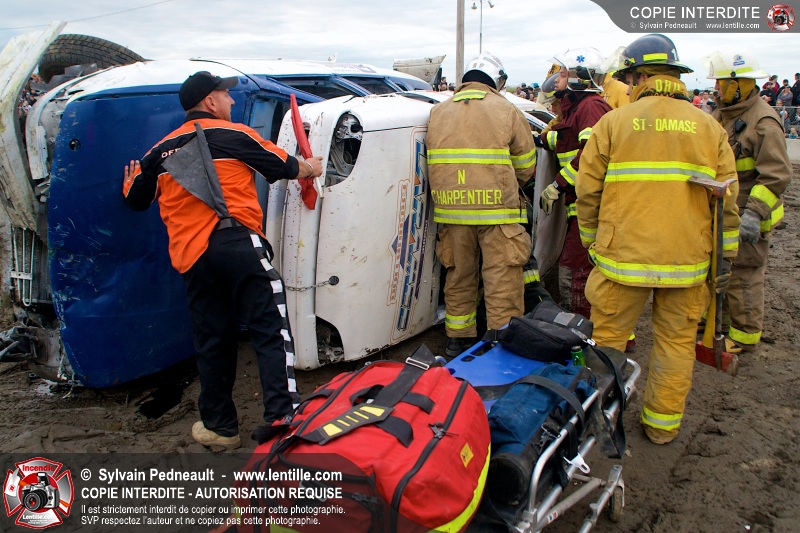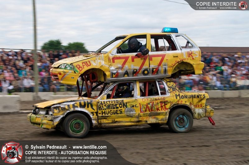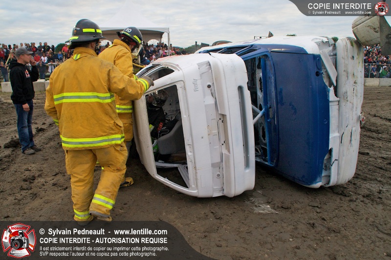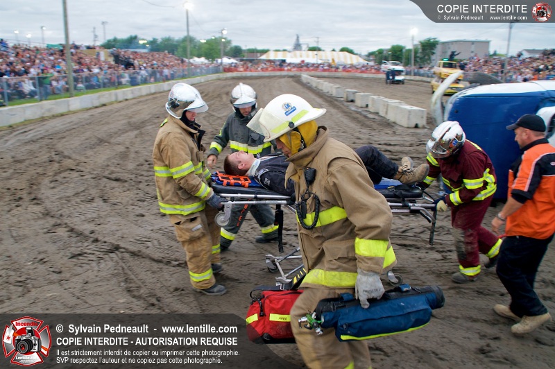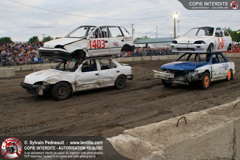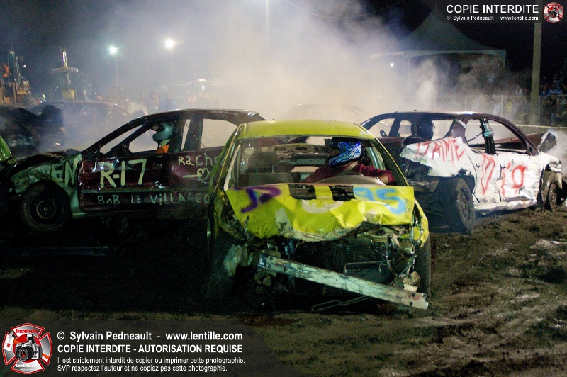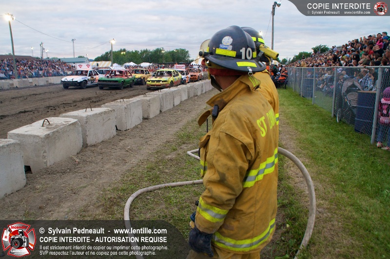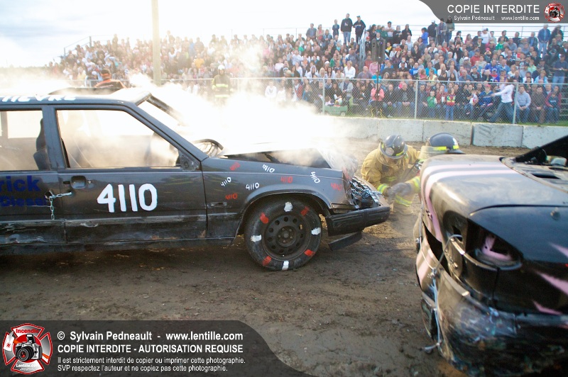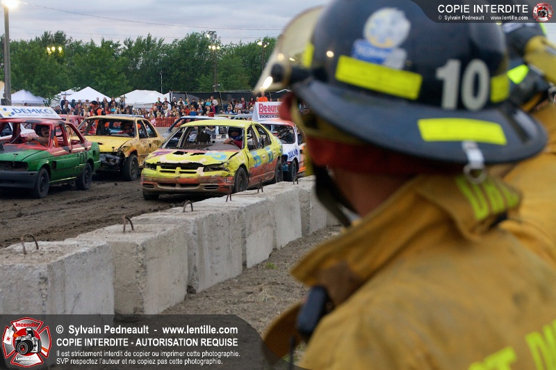 Le Festival du Maïs de St-Damase a présenté encore cette année un derby de démolition. Le Service incendie de St-Damase et l'équipe Pro-Médic étaient sur place en cas d'incendie ou d'accident sur la piste.