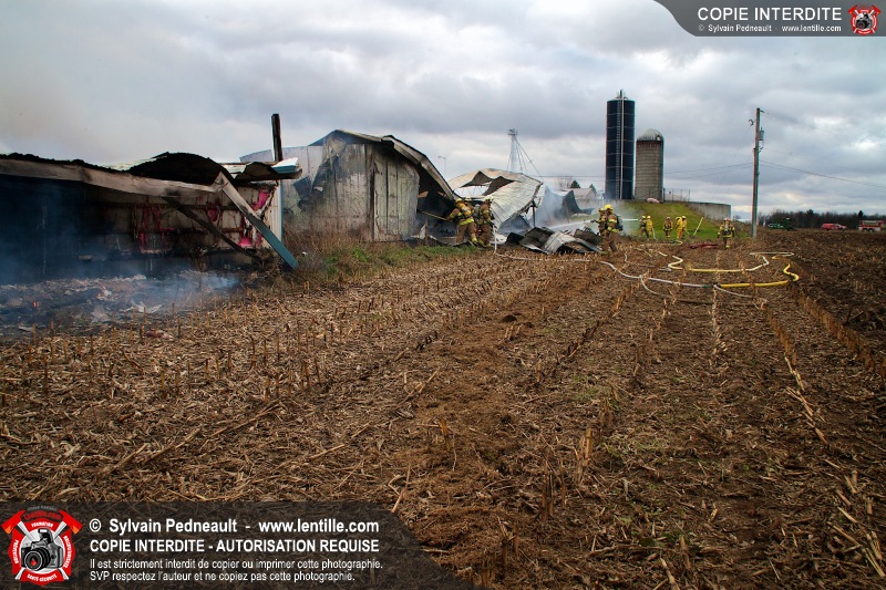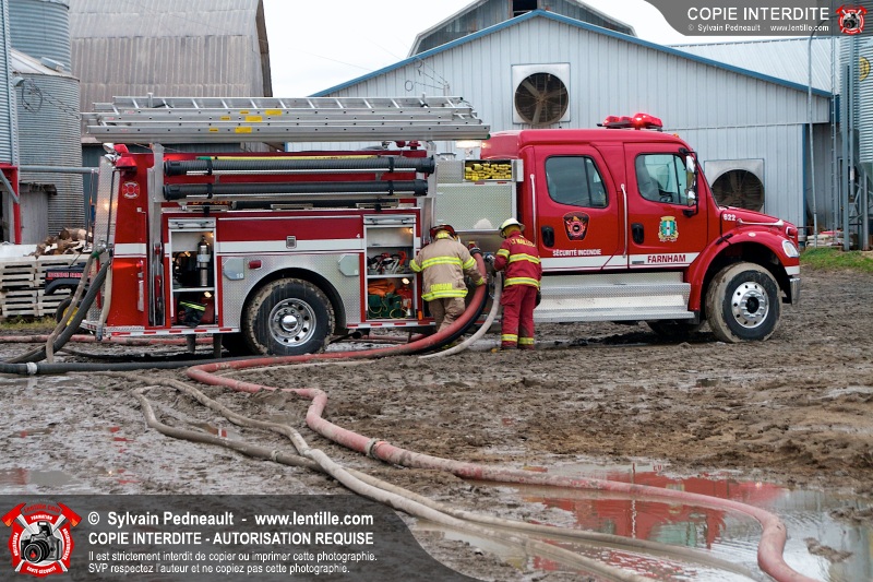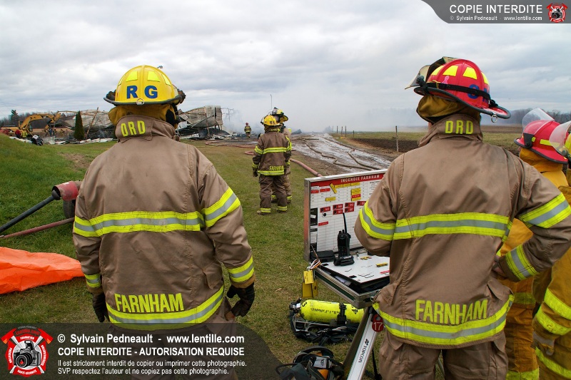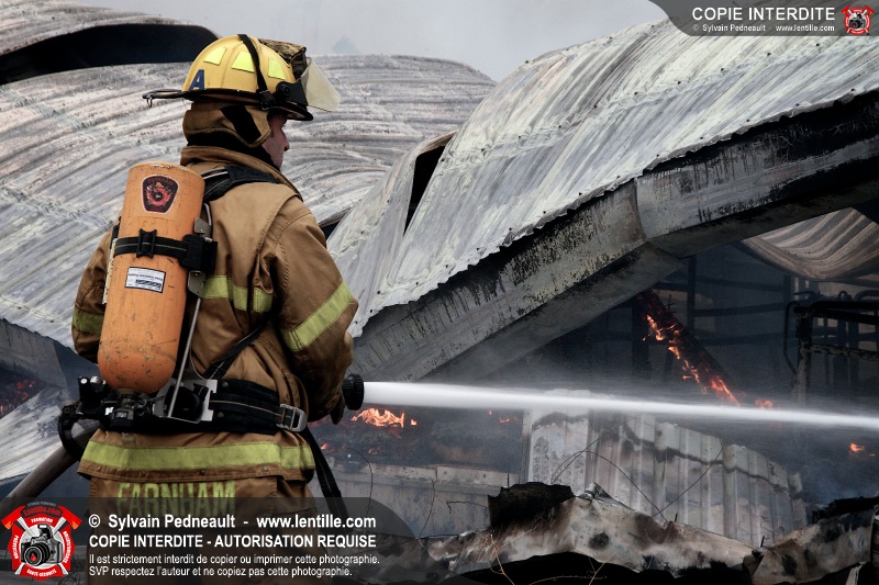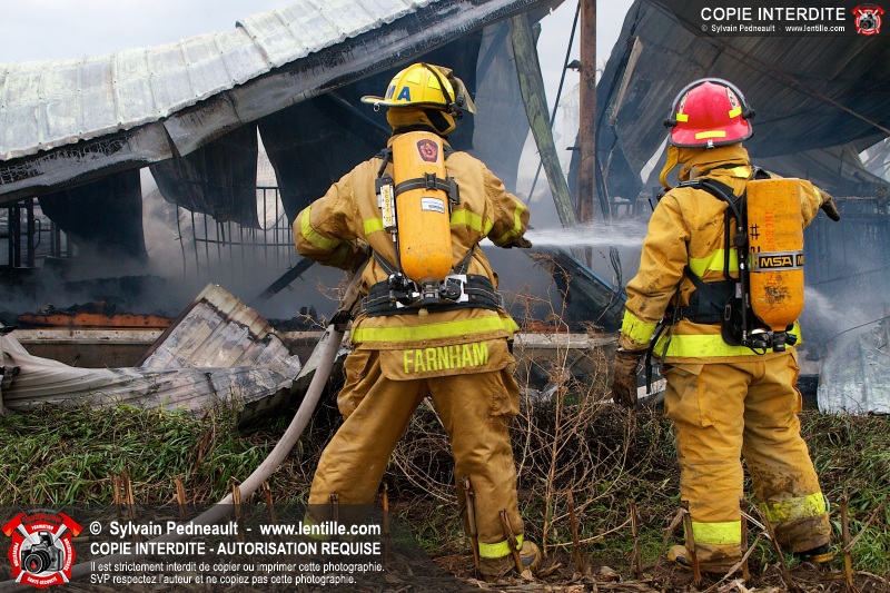 Les pompiers de Farnham, aidés de leurs collègues des services incendie voisins, ont combattu un incendie dans une porcherie. À l'arrivée des premières unités, l'incendie enveloppait déjà l'ensemble du bâtiment et le panache de fumée était visible à plus de 50 kilomètres de distance.